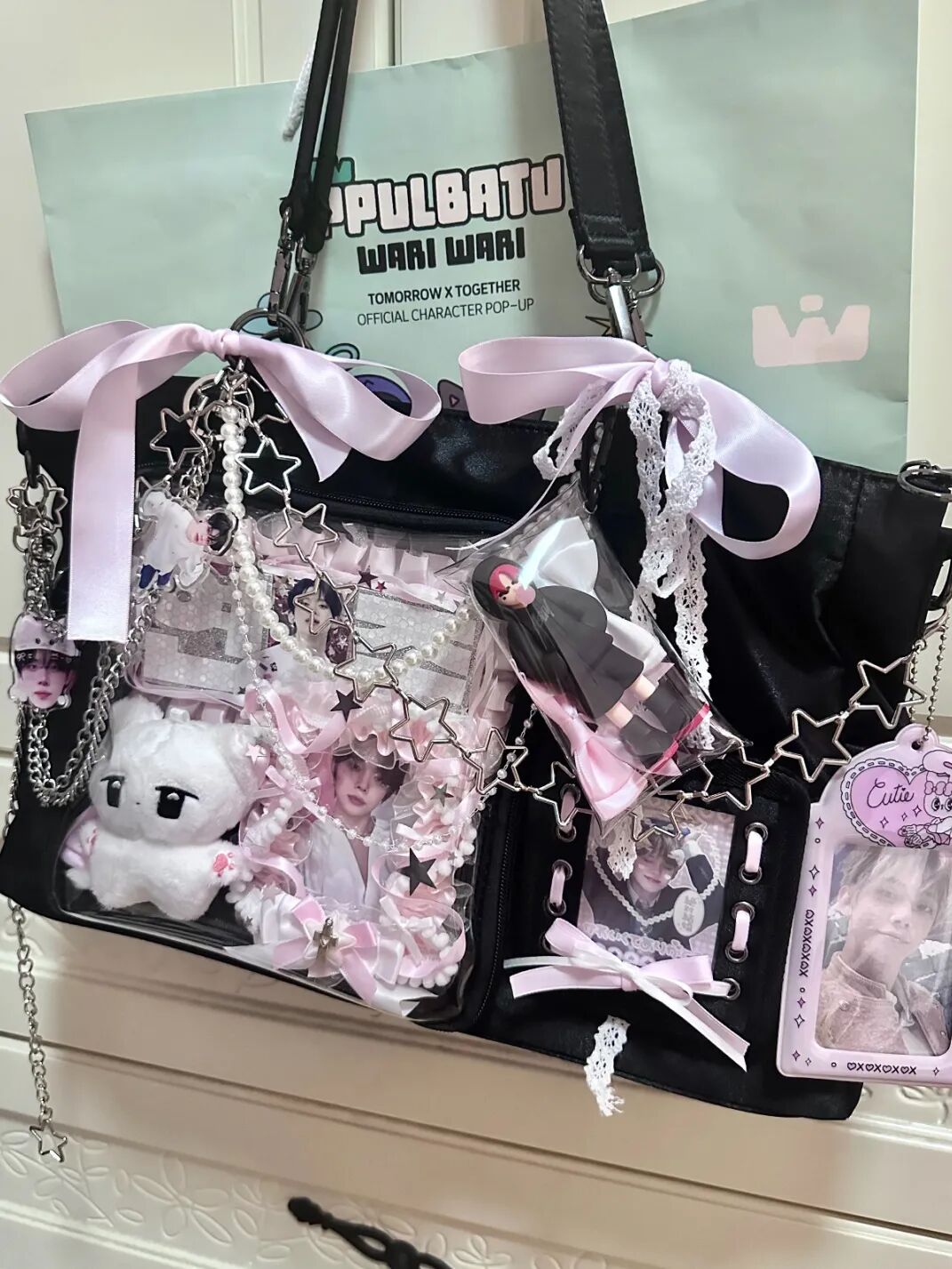当偶像将心爱的泡泡玛特、三丽鸥或Jellycat玩偶挂在包上时,他们挂出的不仅是童趣,更是一种“可爱可以战胜一切”的生活态度。
