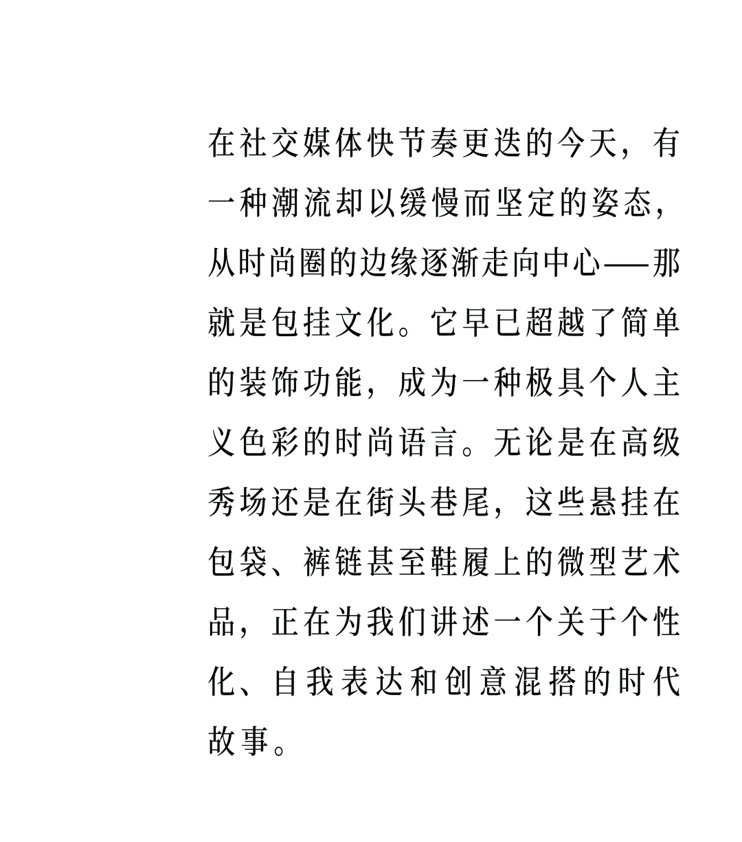 包挂文化之所以成为这个时代的时尚印记,正因为它回应了我们在标准化世界中对独特性的渴望,在数字洪流中对真实触感的追寻。每一件挂饰,都是佩戴者向世界递出的一枚微型名片。