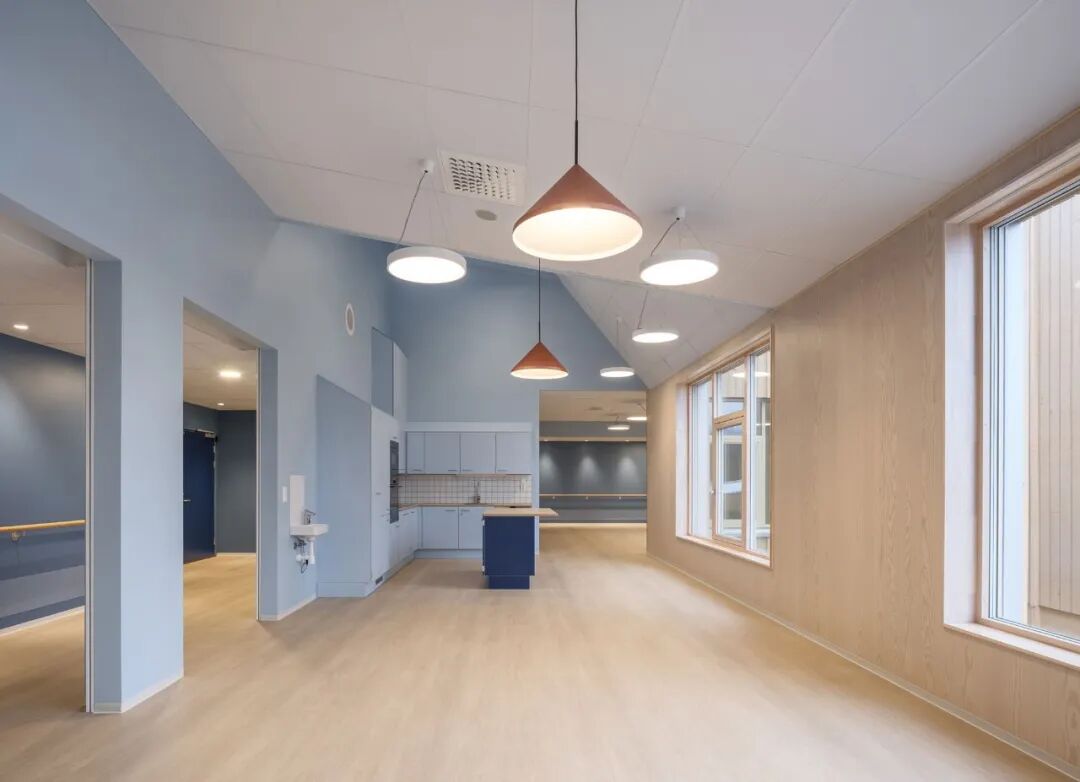 在适老化住房不断发展的当下, Furuset Hageby 养老社区向人们展示了如何通过适用于失智人群的空间布局、绿色景观与社交配套设施,提升老年人的生活品质。© Adam Mork