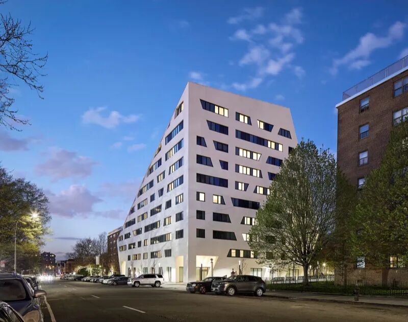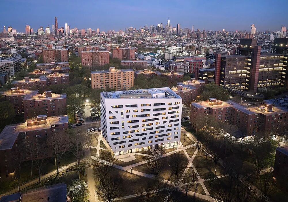 由Studio Libeskind 设计的老年保障房项目“萨姆纳中庭(Atrium at Sumner)”于2024年正式亮相。这个耗资1.32亿美元的项目于2017年开始设计,并于2021年夏天开始施工。“萨姆纳中庭”位于布鲁克林 Marcus Garvey 大道上的纽约大学萨姆纳学院校园内。