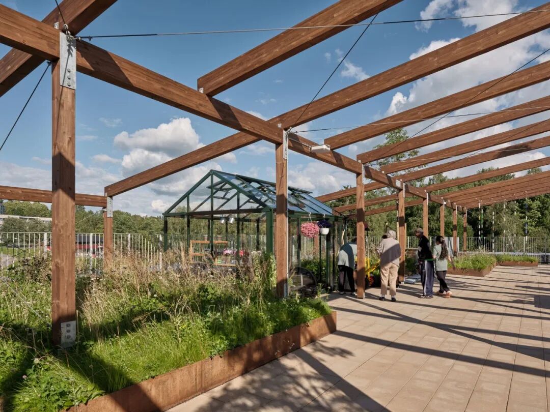 nArchitects 坚持的一个重要设计理念,是不将建筑铺满整个地块。他们认为,花园空间同样是打造健康宜居、能激发住户参与感的老年社区的关键要素。这一设计思路也很快得到了开发商的认可。“我们设计了一条很长的带顶走廊,老年人可以在这里闲坐、休憩,坐在户外家具上看看热闹、聊聊天,增进彼此的交流。” 此外,项目还特别规划了一条步行道,方便住户前往邻近的公园,同时促进不同年龄段人群之间的互动。