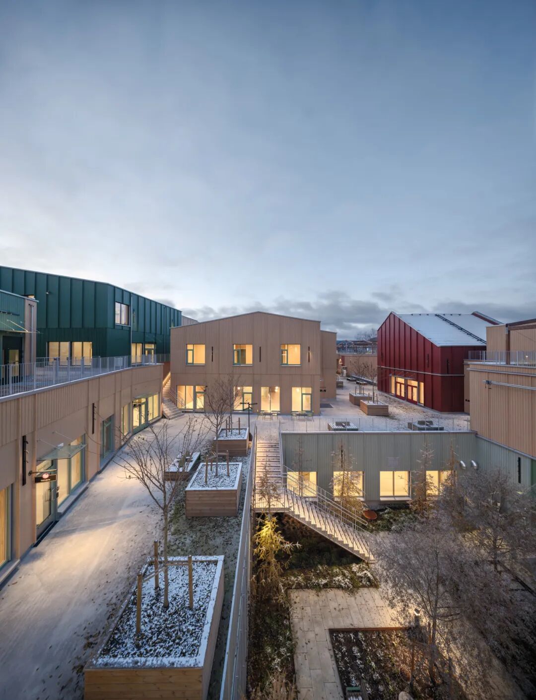 位于奥斯陆的 Furuset Hageby 养老社区,由Nord Architects 和 3RW Arkitekter 联合设计。项目采用村落式失智照护模式,将居住者的自主性、环境的熟悉感与社区归属感放在首位。© Adam Mork