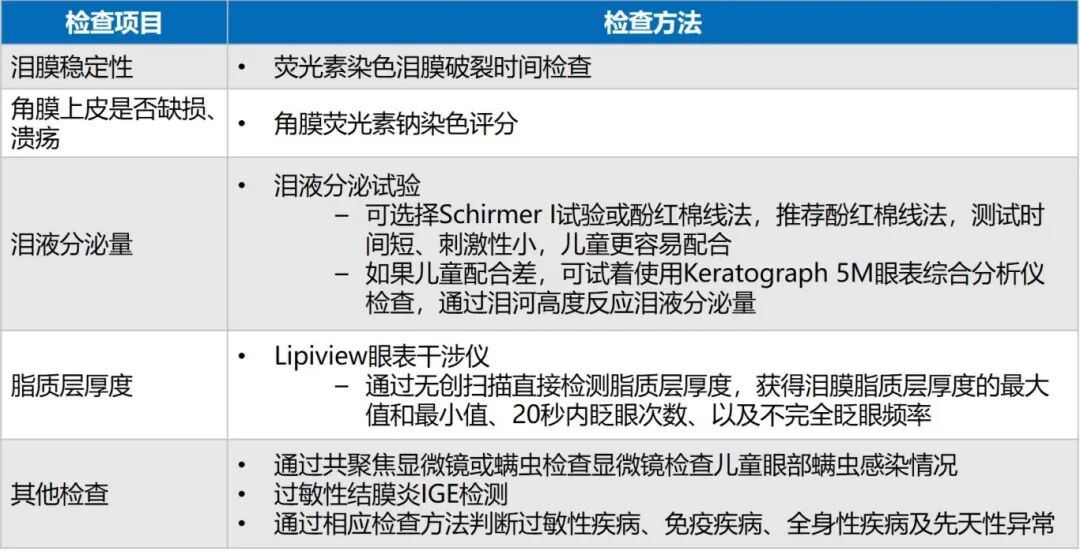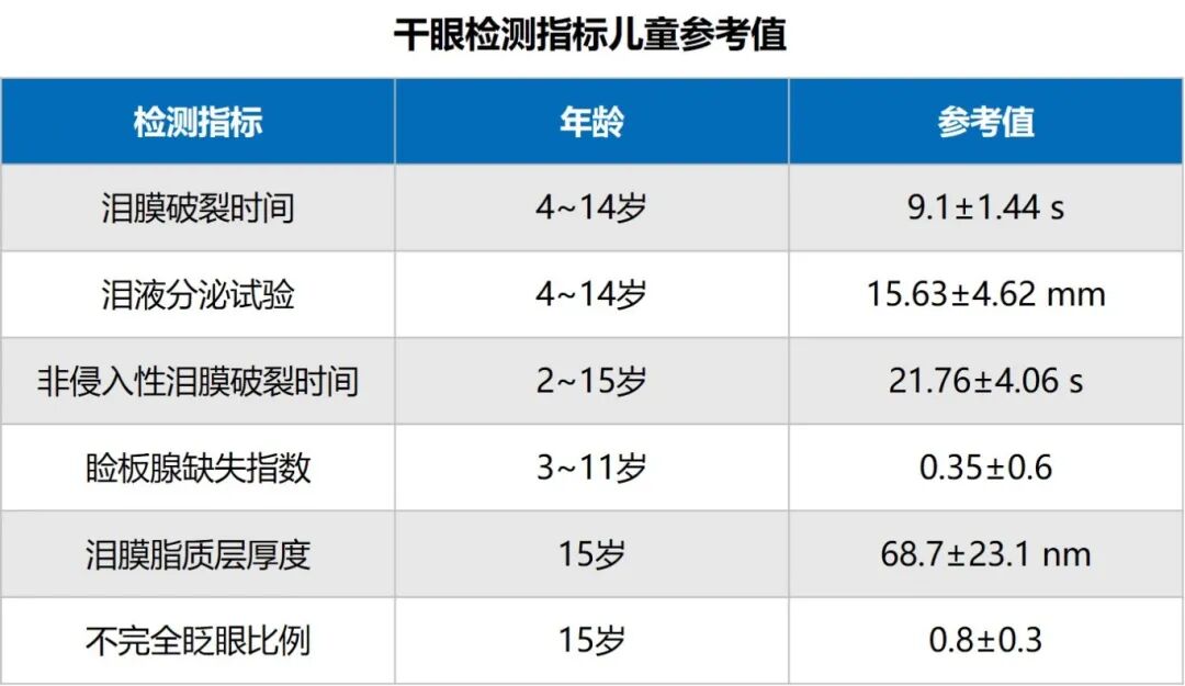 目前尚无儿童干眼的诊断标准,可参考成年干眼的诊断标准,但需考虑到儿童泪液分泌量较成人多,泪膜破裂时间较成人长等因素1(图8)。