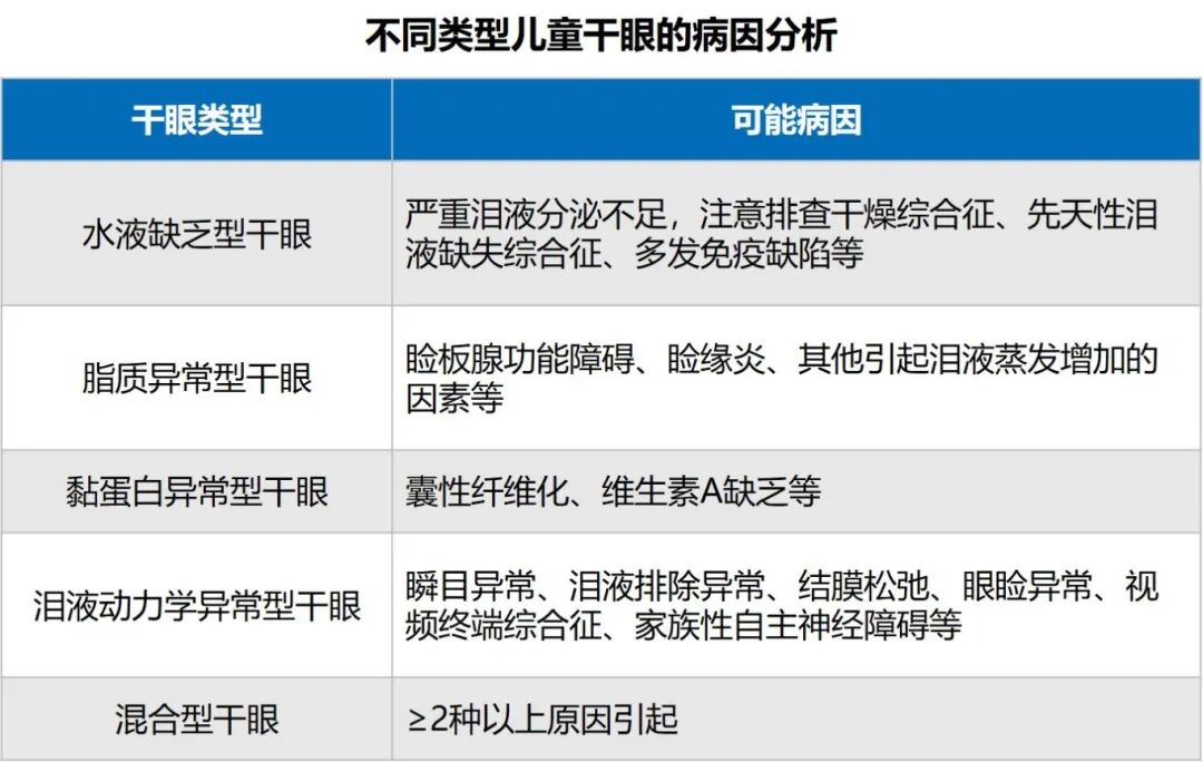 儿童干眼的分类大体与成人相同,但在分析病因时,需重点考虑的因素可能不同1(图9)。