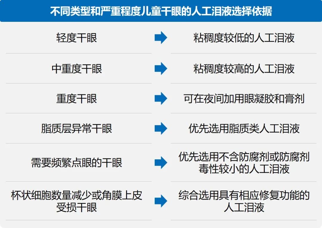 应根据患病儿童的干眼类型和严重程度选择合适的人工泪液1(图11)。
