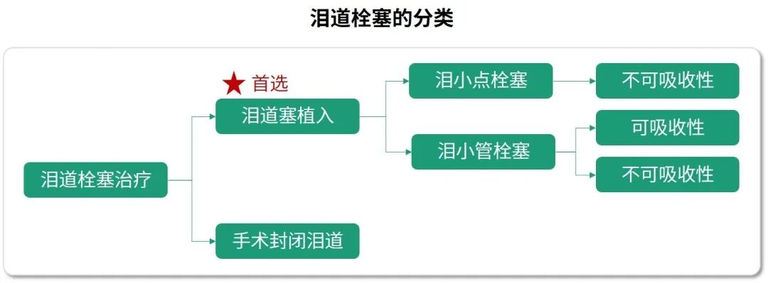 泪道栓塞通过阻断泪液流出,从而延长泪液在眼表的停留时间。可分为泪道塞植入和手术封闭泪道两大类。其中,泪道塞植入操作相对简单安全,常作为泪道栓塞治疗的首选;而手术封闭由于具有手术创伤和并发症,通常只适用于泪小点扩张、泪道变形等不适合泪道塞植入的患者(图9)1。