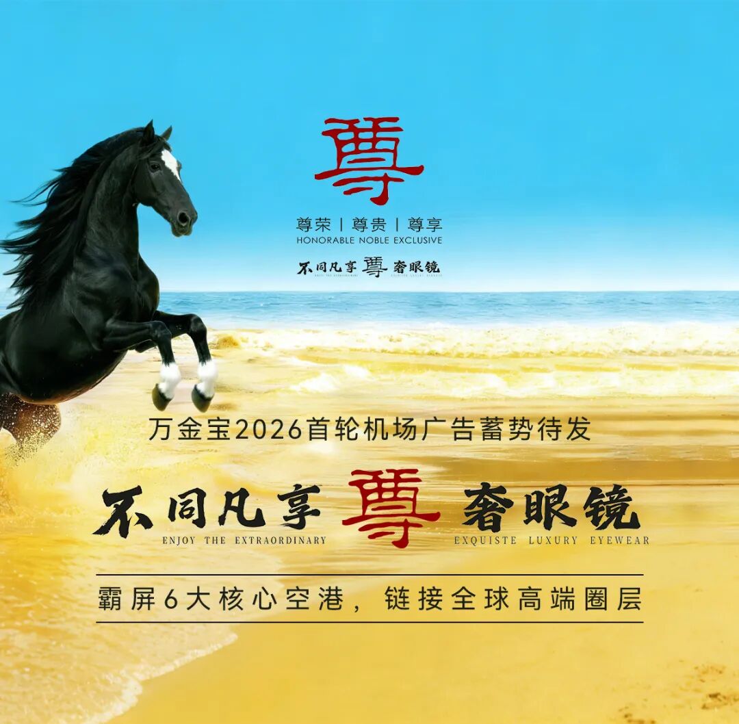万金宝轻奢眼镜2026年品牌战略首轮机场广告即将重磅启幕,以“不同凡享 尊奢眼镜”品牌理念为核心,于2月4日起登陆全国6大核心国际机场,通过全方位品牌视觉形象展示,霸屏航空枢纽核心场景,精准触达高端消费群体。