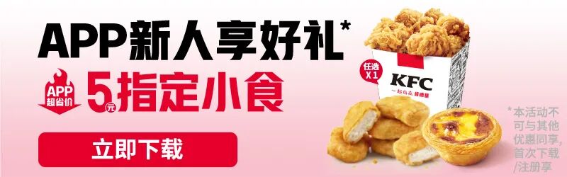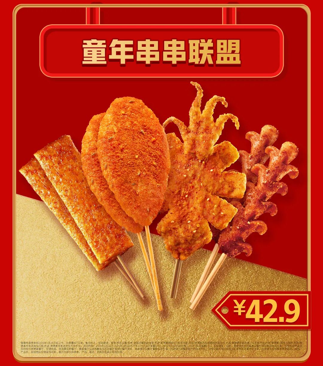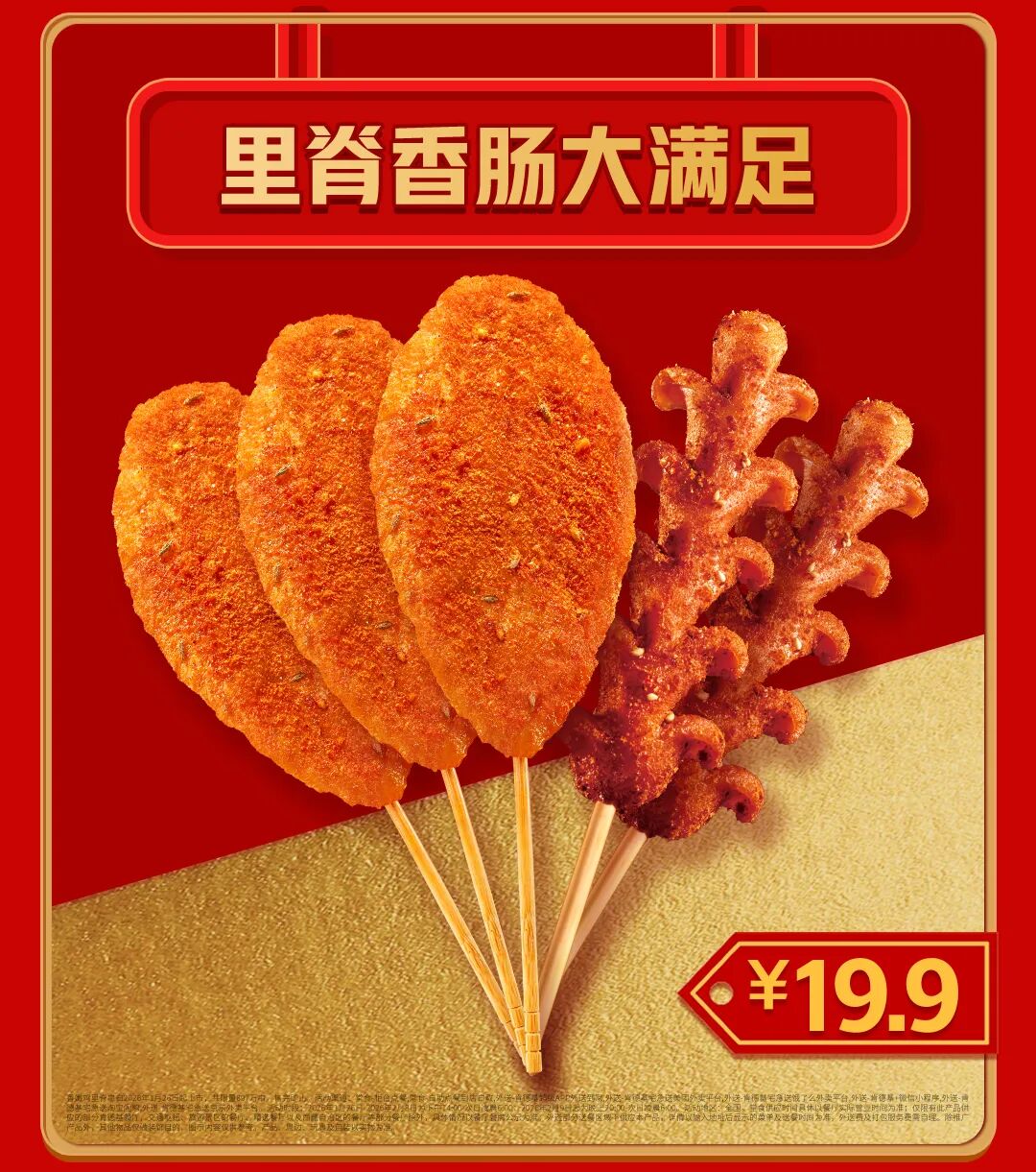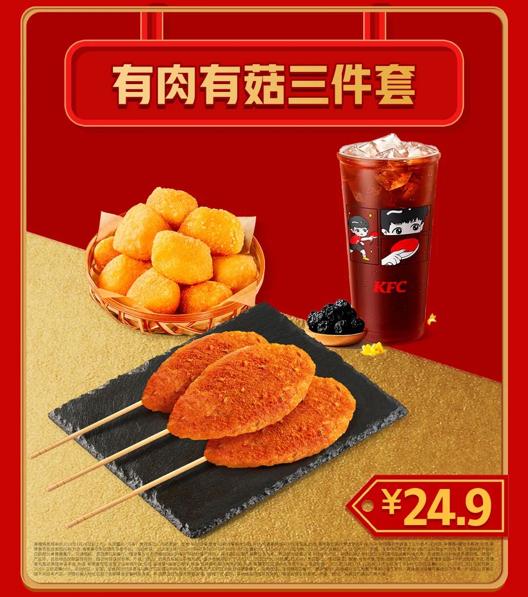 香嫩鸡里脊串自2026年1月26日起上市,共限量897万串,售完即止。活动渠道:堂食-柜台点餐,堂食-自助点餐到店自取,外送-肯德基超级APP外送到家,外送-肯德基宅急送美团外卖平台,外送-肯德基宅急送饿了么外卖平台,外送-肯德基+微信小程序,外送-肯德基宅急送淘宝闪购,外送-肯德基宅急送京东外卖平台。活动时段:2026年1月26日-2026年2月8日为下午14:00-次日凌晨6:00;2026年2月9日起为晚上20:00-次日凌晨6:00。活动地区:全国。堂食供应时间具体以餐厅实际营业时间为准,仅限有此产品供应的部分肯德基餐厅,交通枢纽、旅游景区的餐厅、精选餐厅以及西藏自治区的餐厅等部分餐厅除外,具体情况以餐厅餐牌公示为准。外送部分送餐区域不供应本产品,详情以输入地址后显示的菜单及送餐时间为准,外送费及打包服务费需自理。除推广产品外,其他物品仅做装饰目的,图示内容仅供参考。产品、周边、玩具及包装以实物为准。爆汁杏鲍菇自2025年11月17日起上市,共限量275万份,售完即止。活动渠道:堂食-柜台点餐,堂食-自助点餐到店自取,外送-肯德基超级APP外送到家,外送-肯德基宅急送美团外卖平台,外送-肯德基宅急送饿了么外卖平台,外送-肯德基+微信小程序,外送-肯德基宅急送淘宝闪购,外送-肯德基宅急送京东外卖平台。活动时段:2025年11月17日-2025年11月30日为下午14:00-次日凌晨6:00;2025年12月1日起为晚上20:00-次日凌晨6:00。活动地区:全国。堂食供应时间具体以餐厅实际营业时间为准,仅限有此产品供应的部分肯德基餐厅,交通枢纽、旅游景区的餐厅、精选餐厅以及西藏自治区的餐厅等部分餐厅除外,具体情况以餐厅餐牌公示为准。外送部分送餐区域不供应本产品,详情以输入地址后显示的菜单及送餐时间为准,外送费及打包服务费需自理。除推广产品外,其他物品仅做装饰目的,图示内容仅供参考。产品、周边、玩具及包装以实物为准。