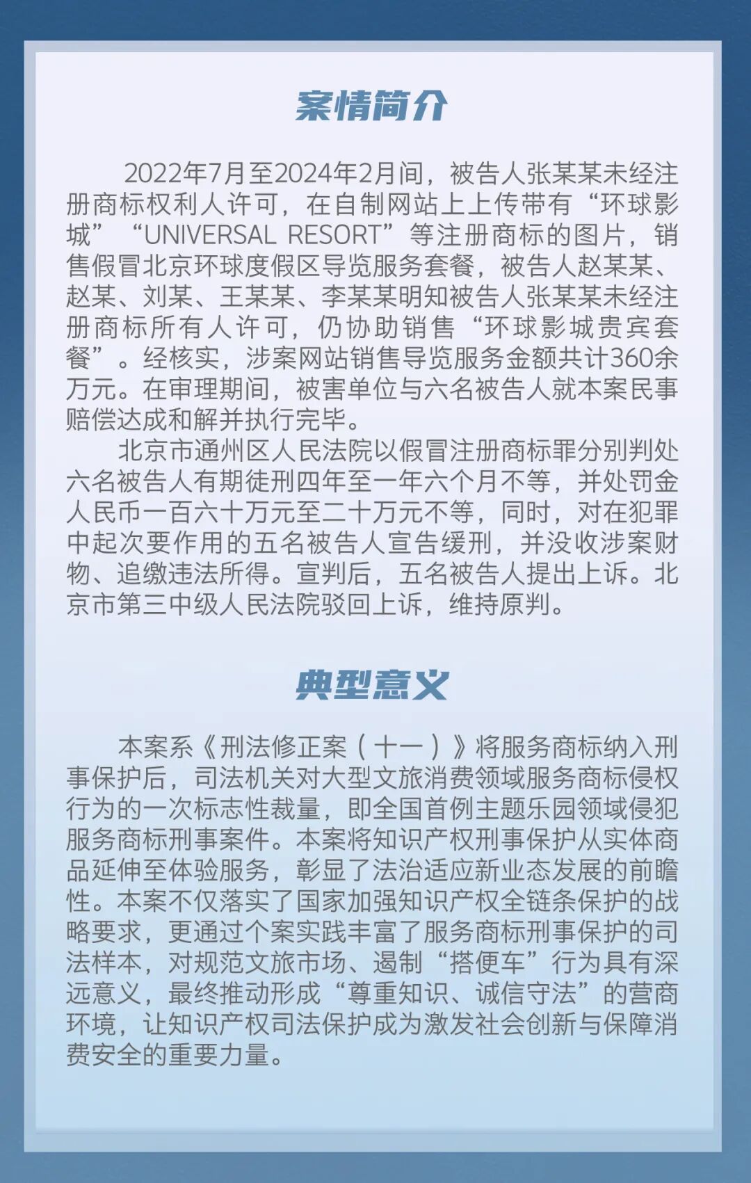 依法维护公平有序的市场环境,在涉华为、北京环球度假区等商标案件中,依法惩治恶意攀附知名商标的违法犯罪行为,有效保护企业商誉和商标权益。