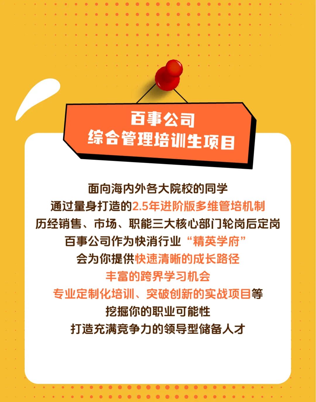 文章内容来源于公众号:百事中国招聘,点此可查看原文,内容版权归相关企业所有,本网站仅供交流学习。若涉及版权问题或存在侵权情况,请及时与我们联系,我们将第一时间进行删除处理。