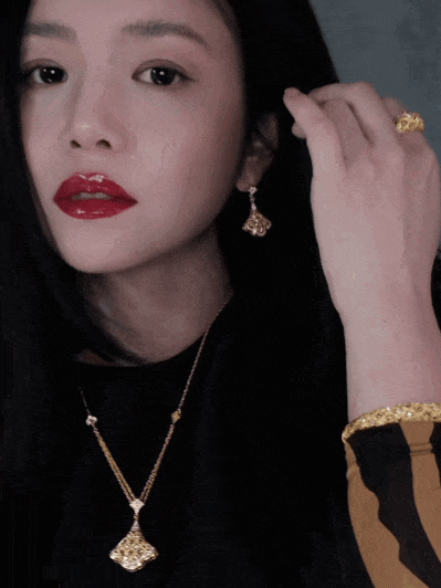陈妍希佩戴六福珠宝唐宫夜宴系列足金钻石首饰