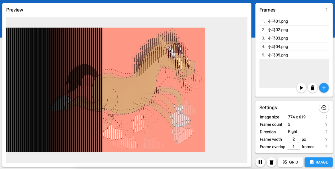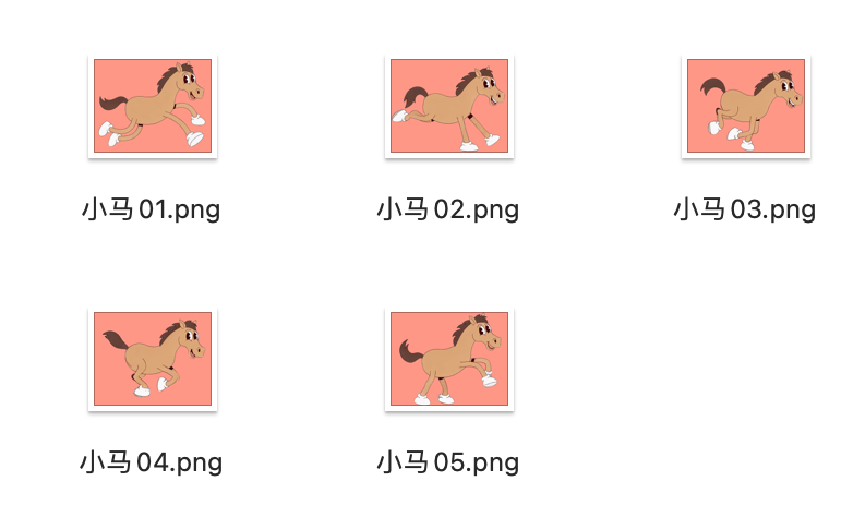 前面案例的两张光栅素材就是在网站中上传了下面几张小马奔跑的图片生成的。