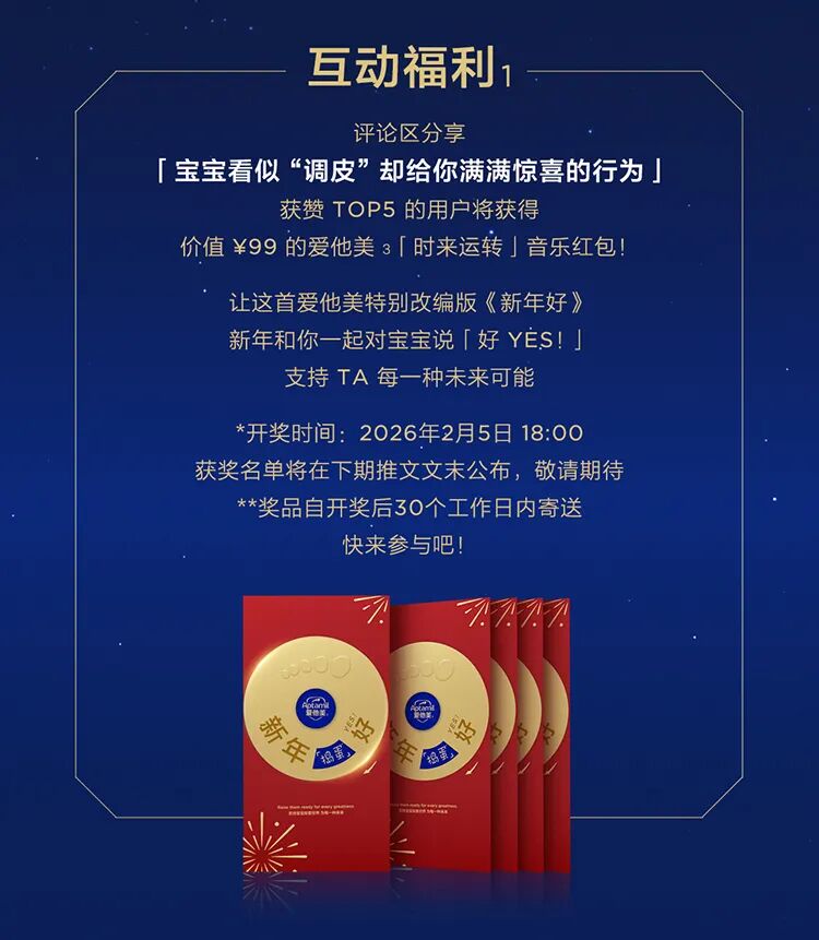 摘要:新春特别版《新年「好」》,对宝宝看似「调皮」的行为说「好」,支持TA探索每一种未来! 【文末福利 一起说「好」 !】