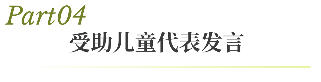 受助儿童代表分享感受并为捐助方代表赠送感谢信。