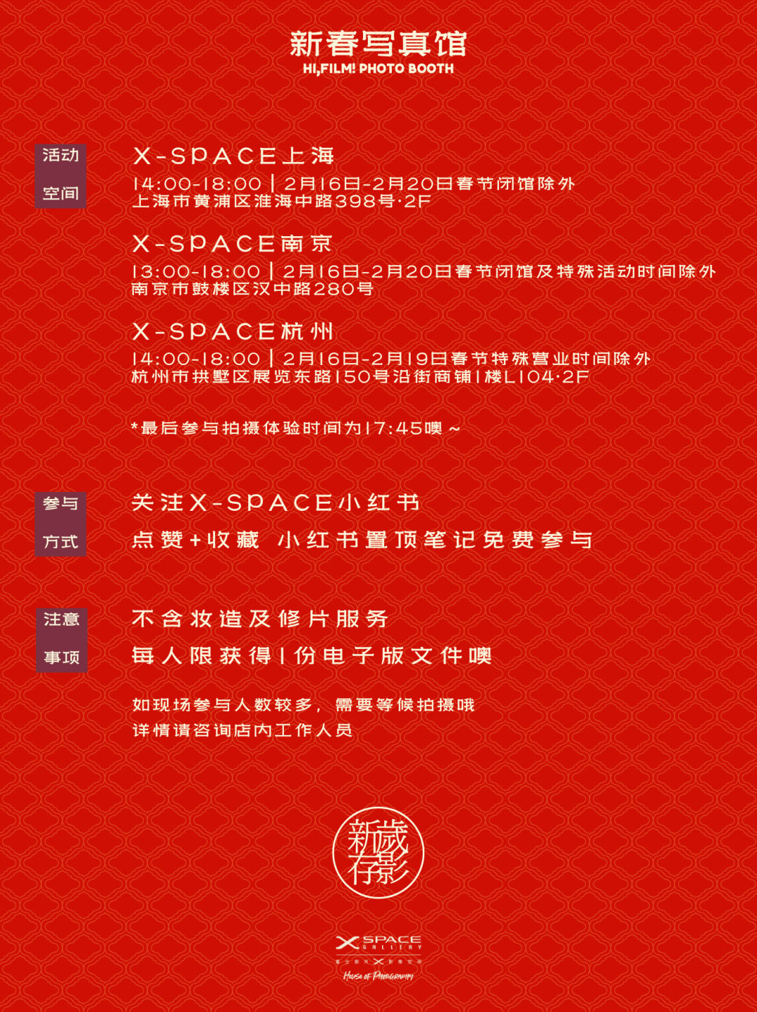同时,Hi,Film!写真馆将在新春到来之际再次开启,限定新春写真馆即将营业。让我们为你拍摄一张送给自己的新春仪式感肖像照片,给自己、也可是与爱的人的新年留影。
