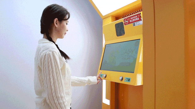 与SALLY在萌趣拍照机前同框定格