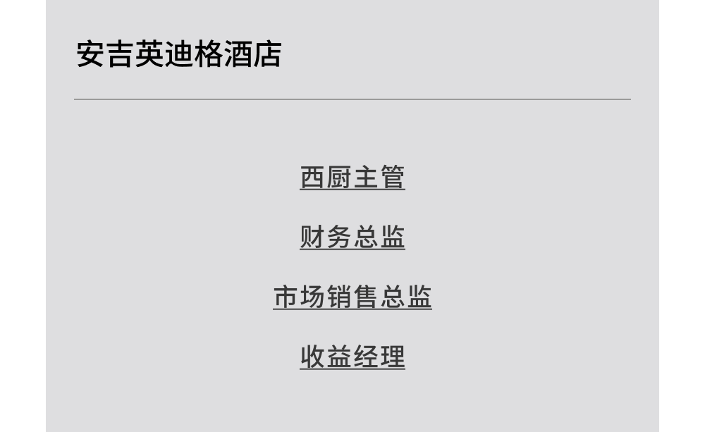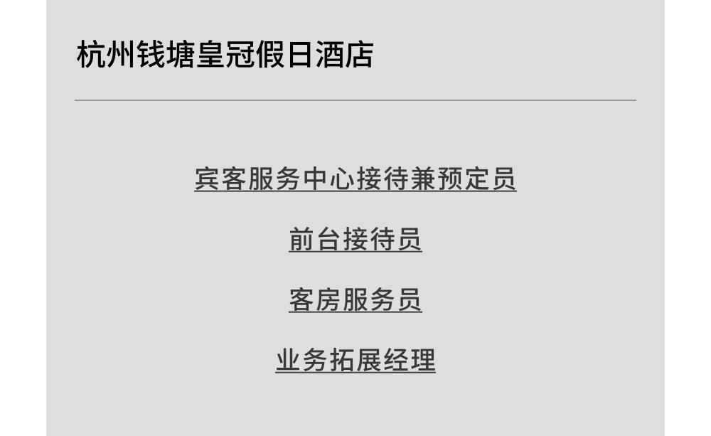 文章内容来源于公众号:洲际酒店集团招聘,点此可查看原文,内容版权归相关企业所有,本网站仅供交流学习。若涉及版权问题或存在侵权情况,请及时与我们联系,我们将第一时间进行删除处理。