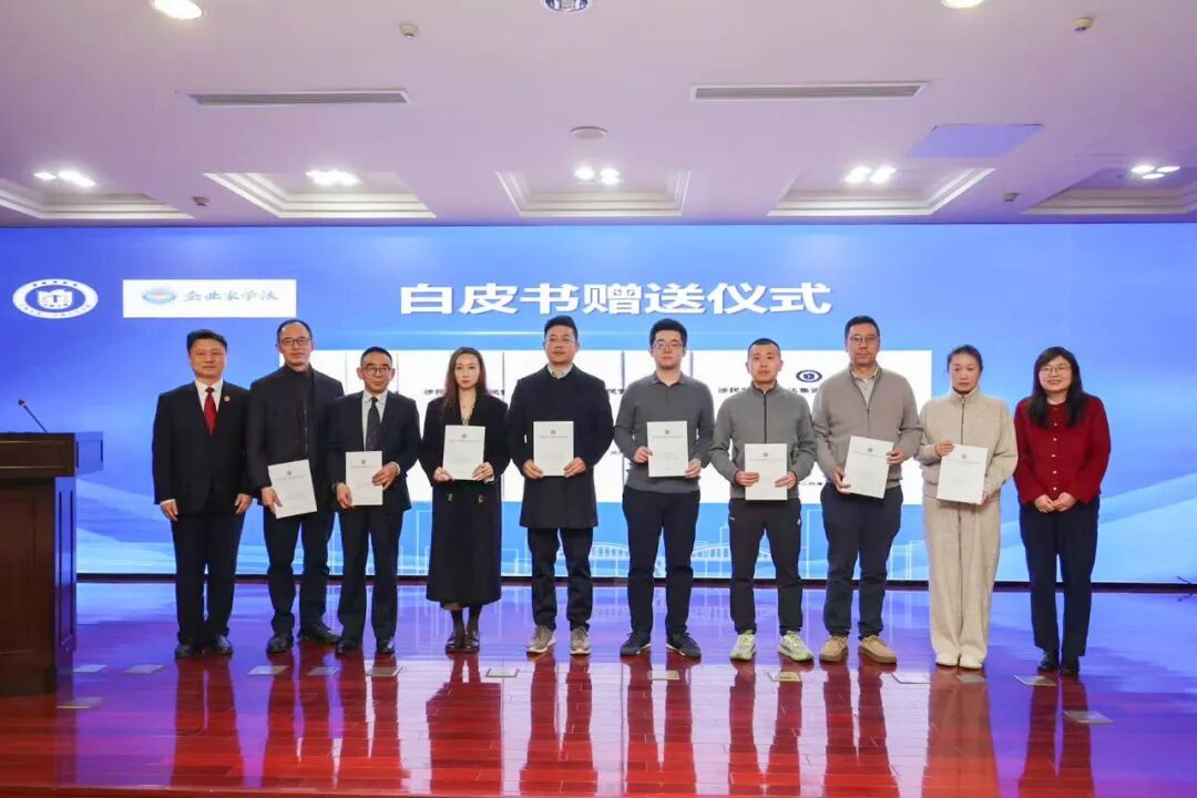 上海一中院孙军副院长、上海工商联封丹华副主席向与会企业家代表赠送白皮书。