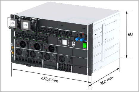 基础单元提供4个整流器,1U的扩展单元还可以增加4个整流器,使得系统的最大容量达到600 A。