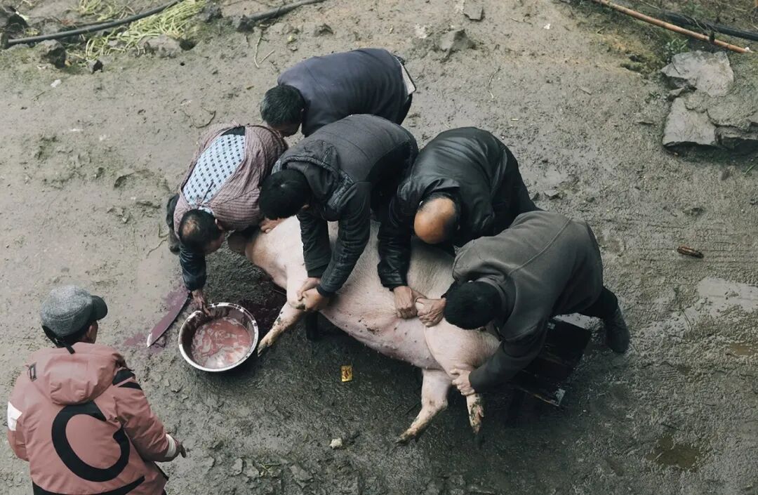 我们那儿过年是从杀年猪开始的。冬至过后,父亲翻出老黄历选吉日,天蒙蒙亮母亲就烧开水,邻里亲朋围满猪圈。杀猪匠念着吉利话,手起刀落,猪血流入兑了盐水的木盆——那是做“头刀菜”的。厨房里七大姑八大姨忙碌不停,猪肝、粉肠快炒,五花肉煸成回锅肉,一桌刨汤宴热滚滚上桌。那是一家杀猪大家香的热络,是乡土最质朴的温情。