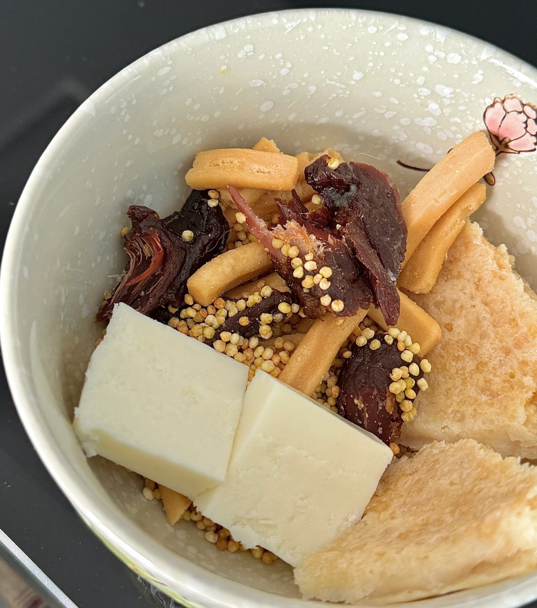 母亲的年,是从腊月初一开始的。她要挑最鲜嫩的羯羊肉,晒足够的奶制品,炸满满一筐黄米油糕。除夕前她像上了弦的钟表,揉面、擀皮、包饺子,码好的饺子像一排排小元宝。她不仅忙吃的,还给每个人缝新衣,给窗棂贴红剪纸,把晒干的沙枣串成串挂屋檐下。母亲的手,是把寻常食材变成年味的那道“工序”,是把琐碎日子过出仪式感的那份用心。