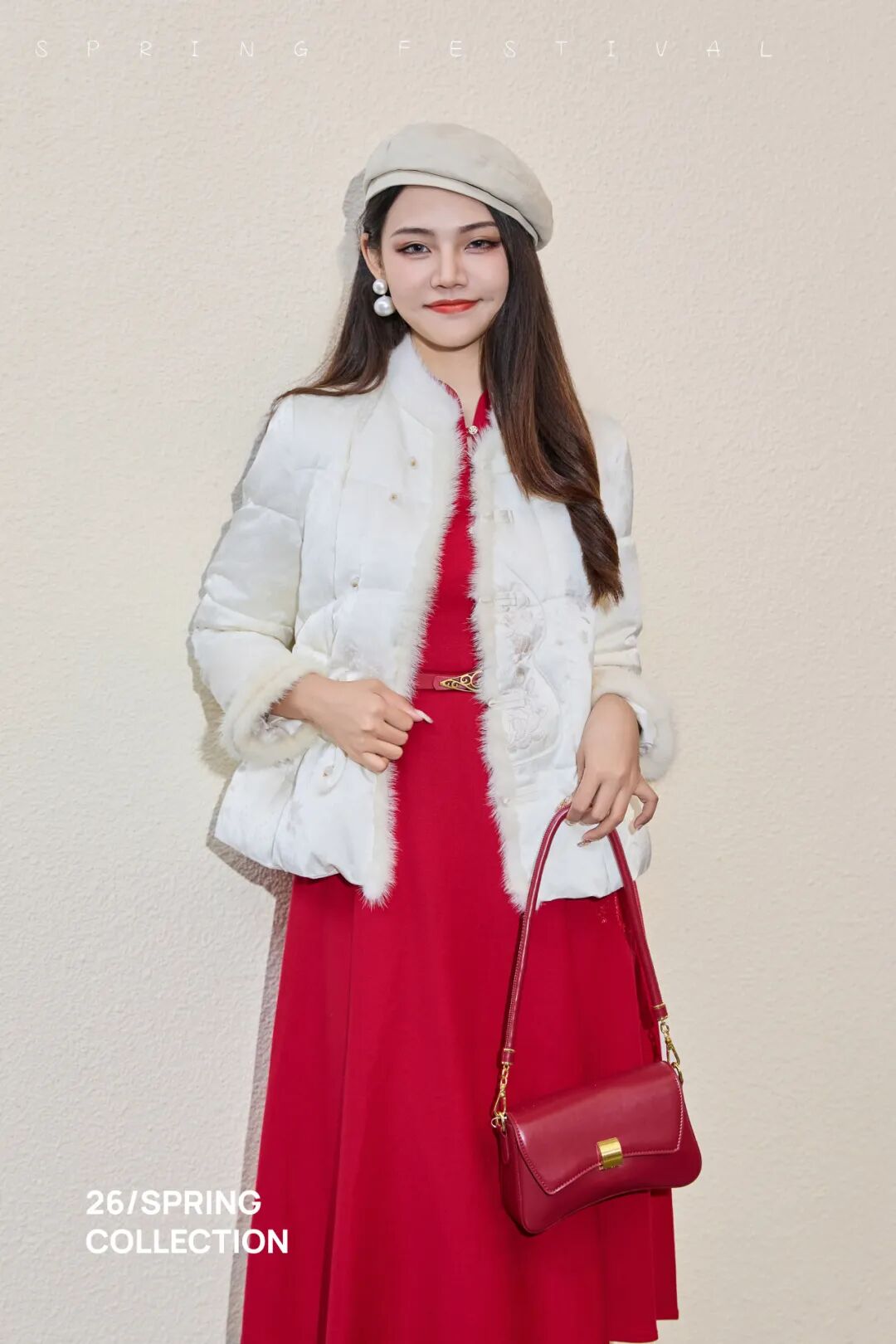 轻盈却绵长的暖,是归途最温柔的铠甲。一抹红掠过院落积雪,恰似行走的炉火;新中式缎面流转暗光,盘扣系住东方风骨——高级的美,懂得在隆重中留白。