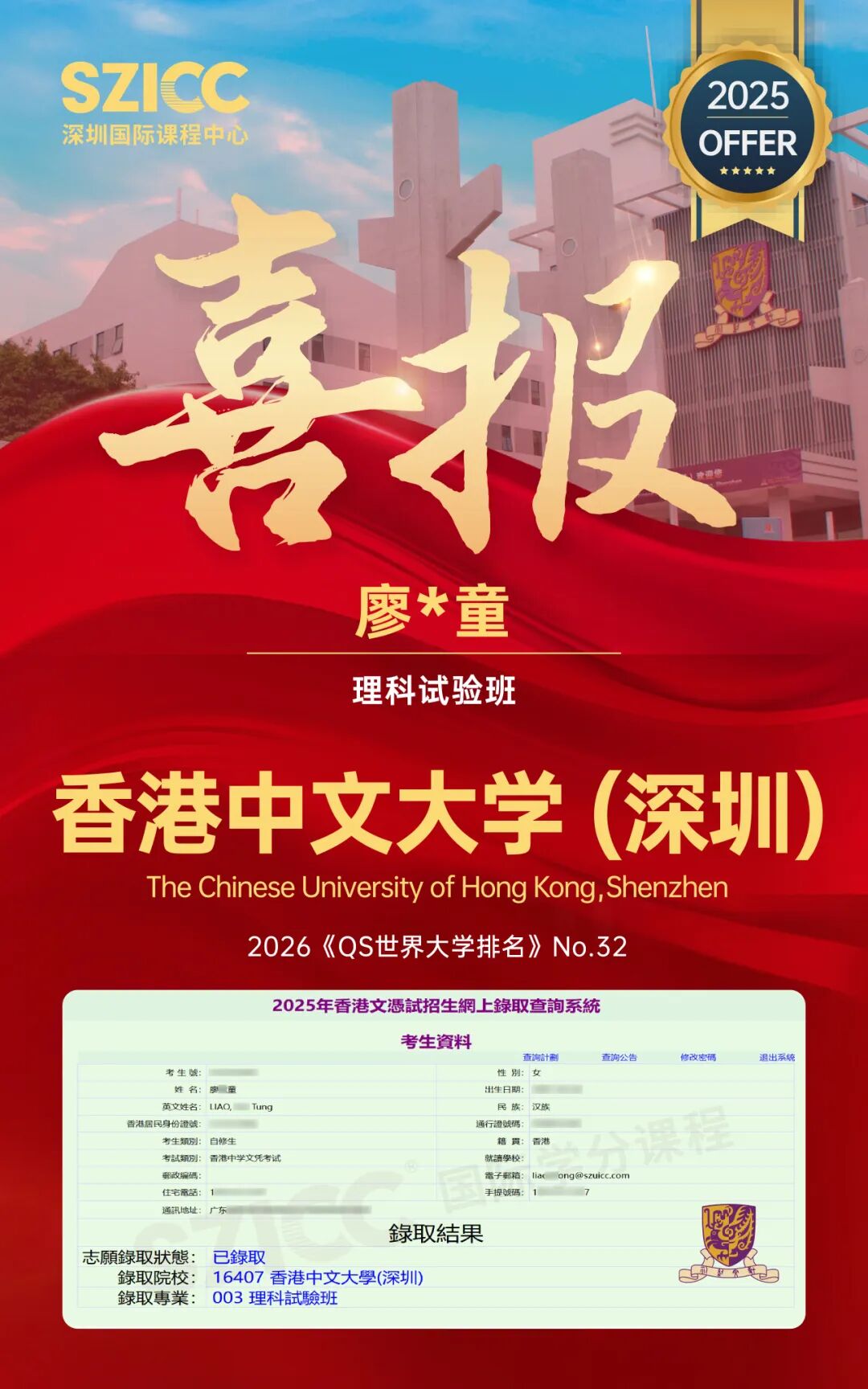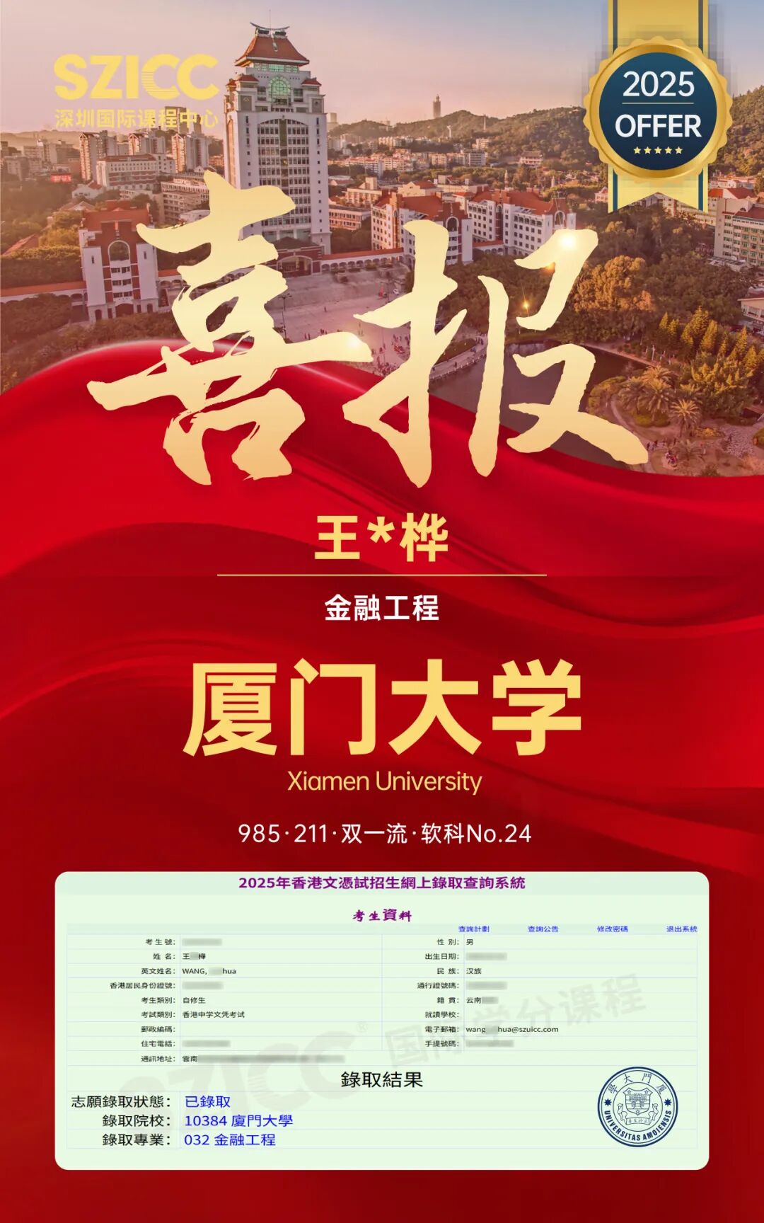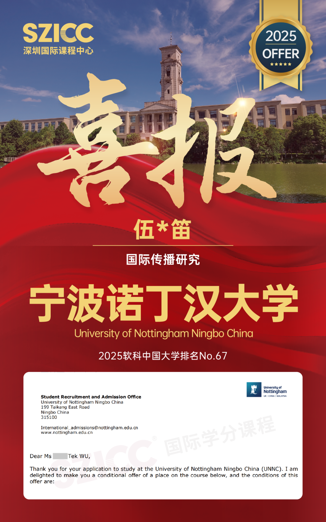 今年,SZICC2025届升学成果斐然:截至目前,SZICC&SWAS2025届国际班137位毕业生,顺利收获英国、美国、中国香港、荷兰、澳大利亚、新加坡、加拿大等7个国家和地区,450+封世界名校录取offer!录取喜报持续更新,敬请期待!
