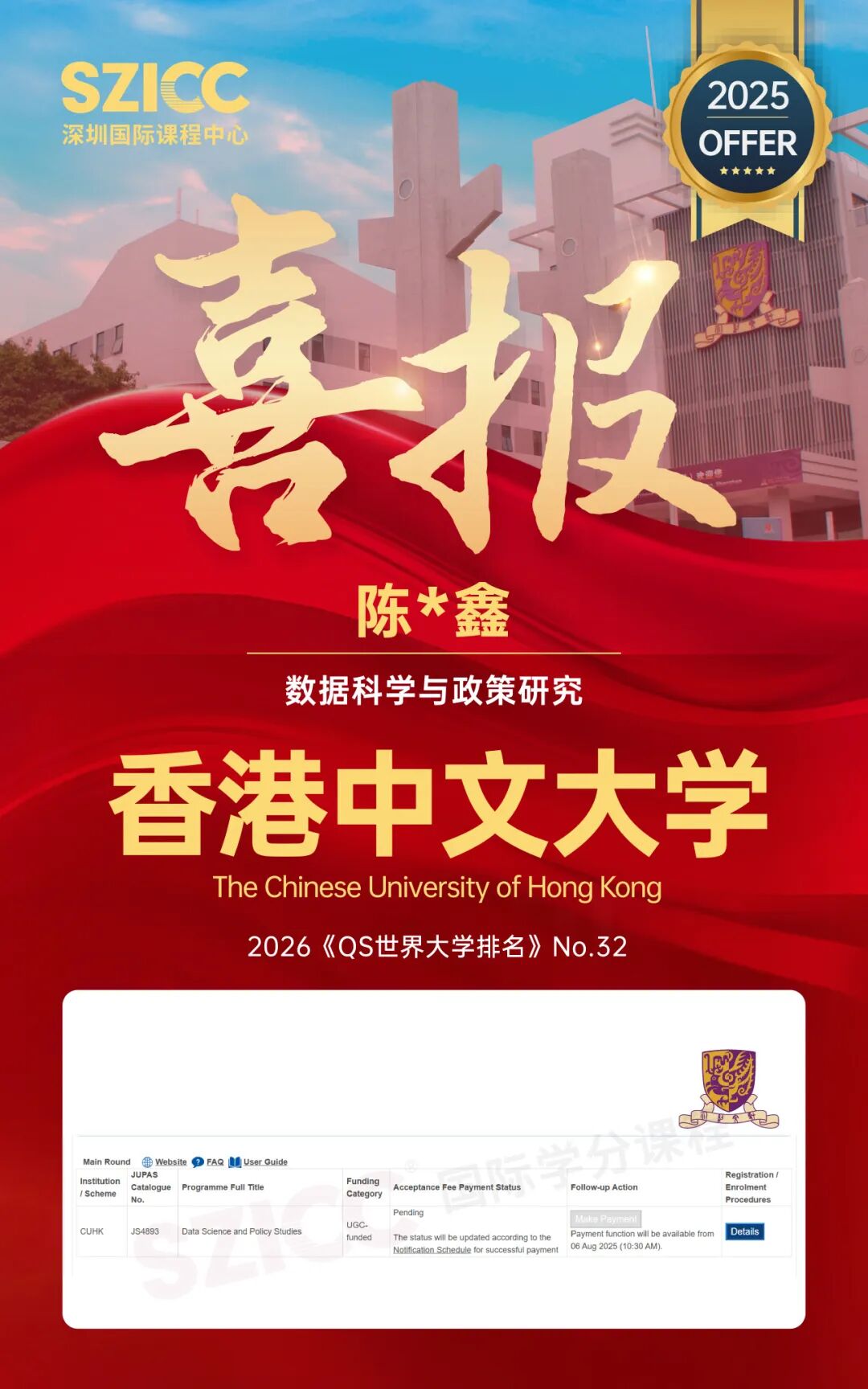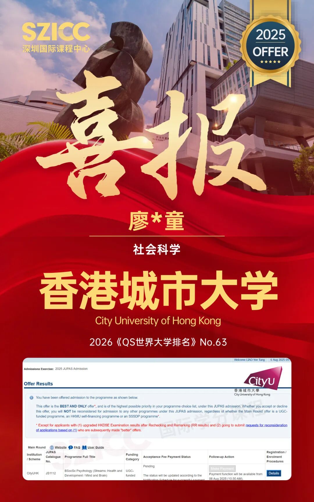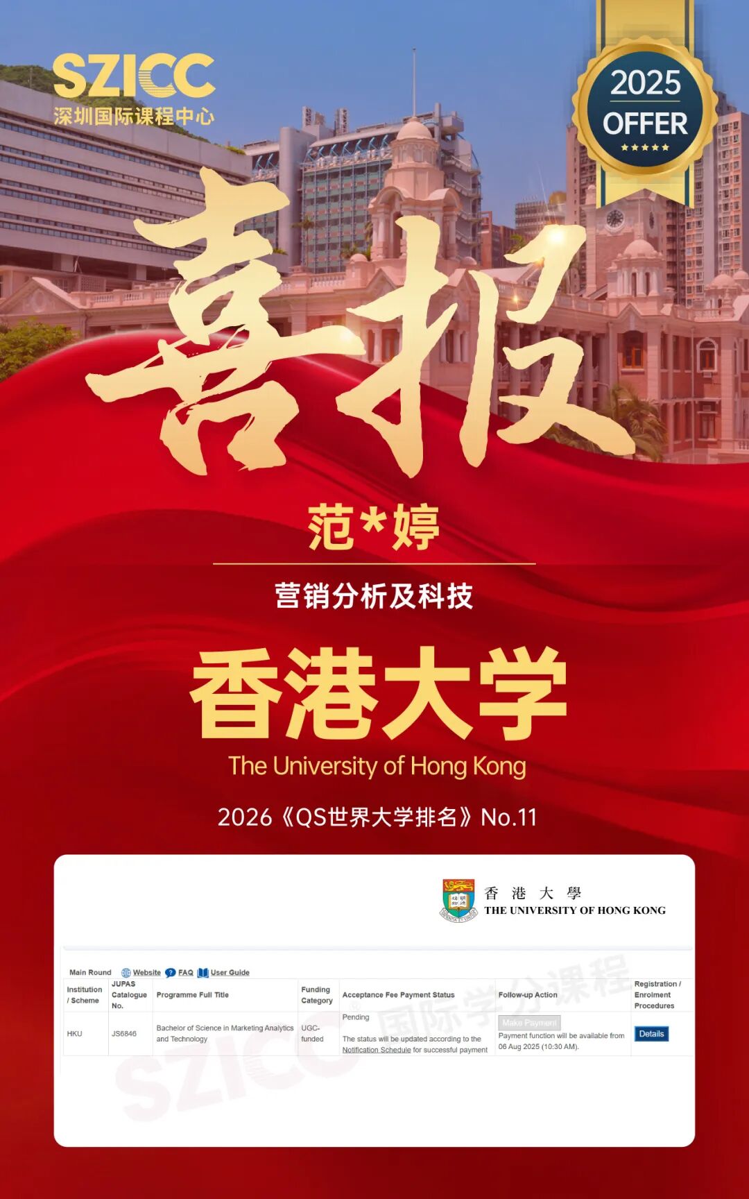 今年,SZICC2025届升学成果斐然:截至目前,SZICC&SWAS2025届国际班137位毕业生,顺利收获英国、美国、中国香港、荷兰、澳大利亚、新加坡、加拿大等7个国家和地区,450+封世界名校录取offer!录取喜报持续更新,敬请期待!