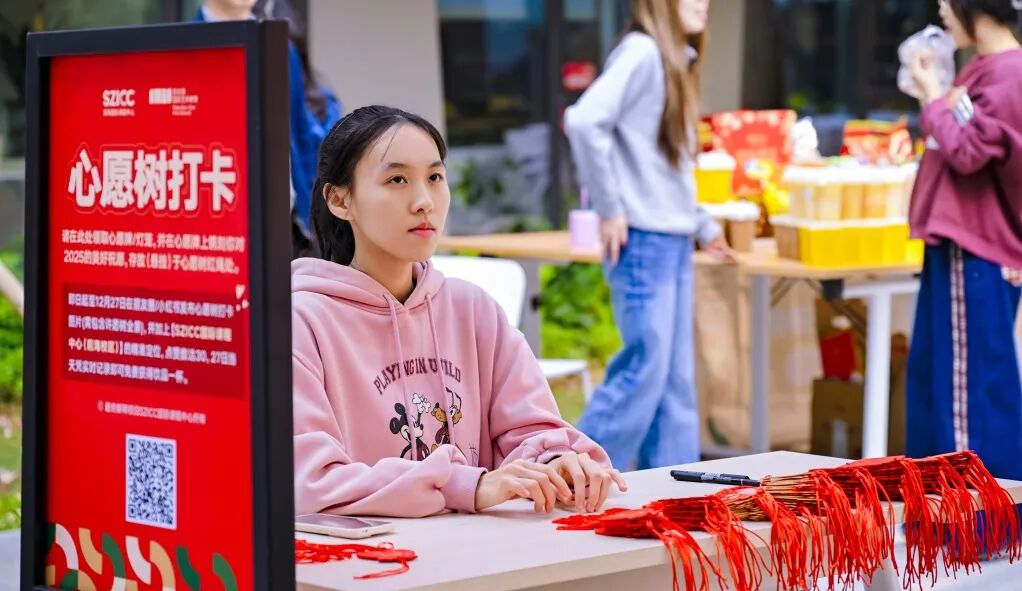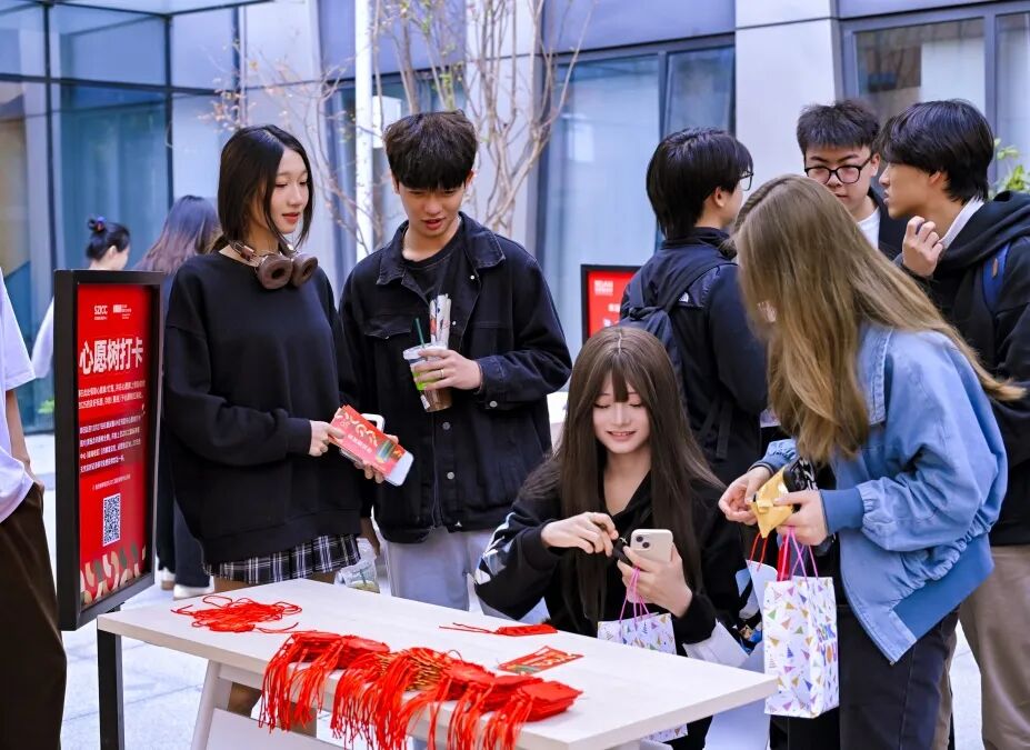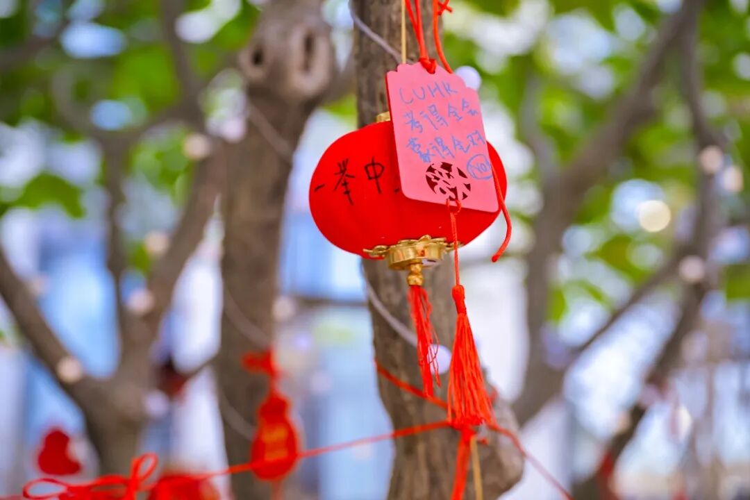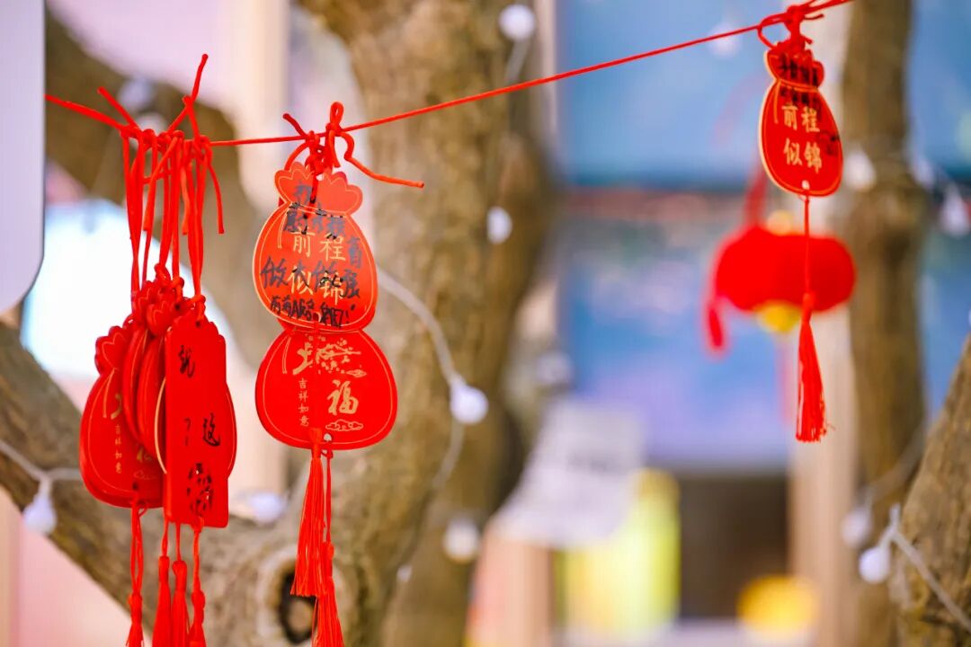 悬挂在心愿树上,浓浓的年味弥漫在校园里。