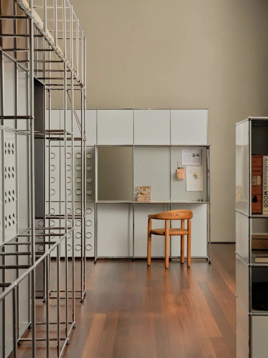 设计师Armando Cabral与室内设计工作室 Loveisenough,分别与瑞士家具品牌 USM 展开合作,以其模块化系统的组件为基础进行设计实验。双方通过重新诠释这套预设的设计工具,探索模块化突破约束体系的可能性。