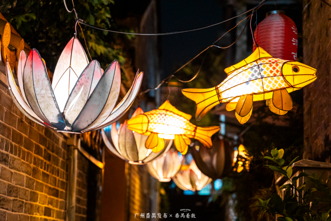 来沙湾古镇,除了欣赏古色古香的传统建筑,感受岁月沉淀的韵味之外,古镇街巷还展示精美的“沙湾鱼灯”。