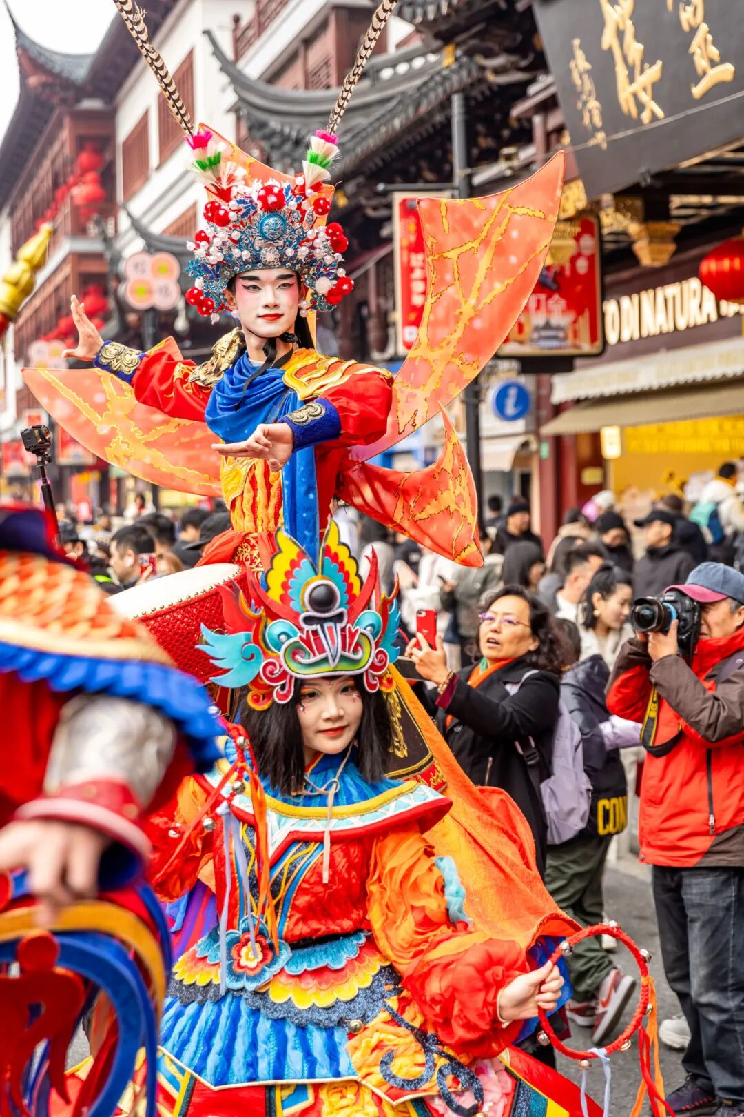 它们把古老民俗演化为可跟随、可参与互动的街头艺术。分别在豫园民俗艺术灯区和BFC风尚潮流灯区交替穿梭。