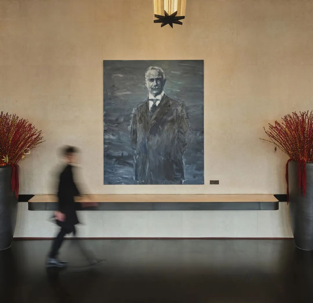 步入北京宝格丽酒店,入口处悬挂的巨幅画像率先迎客。宝格丽创始人Sotirio Bulgari的肖像由中国著名艺术家严培明绘制,沉静目光如同家主般迎人,让人自城市喧嚣中抽离,进入一处更私密的秩序。