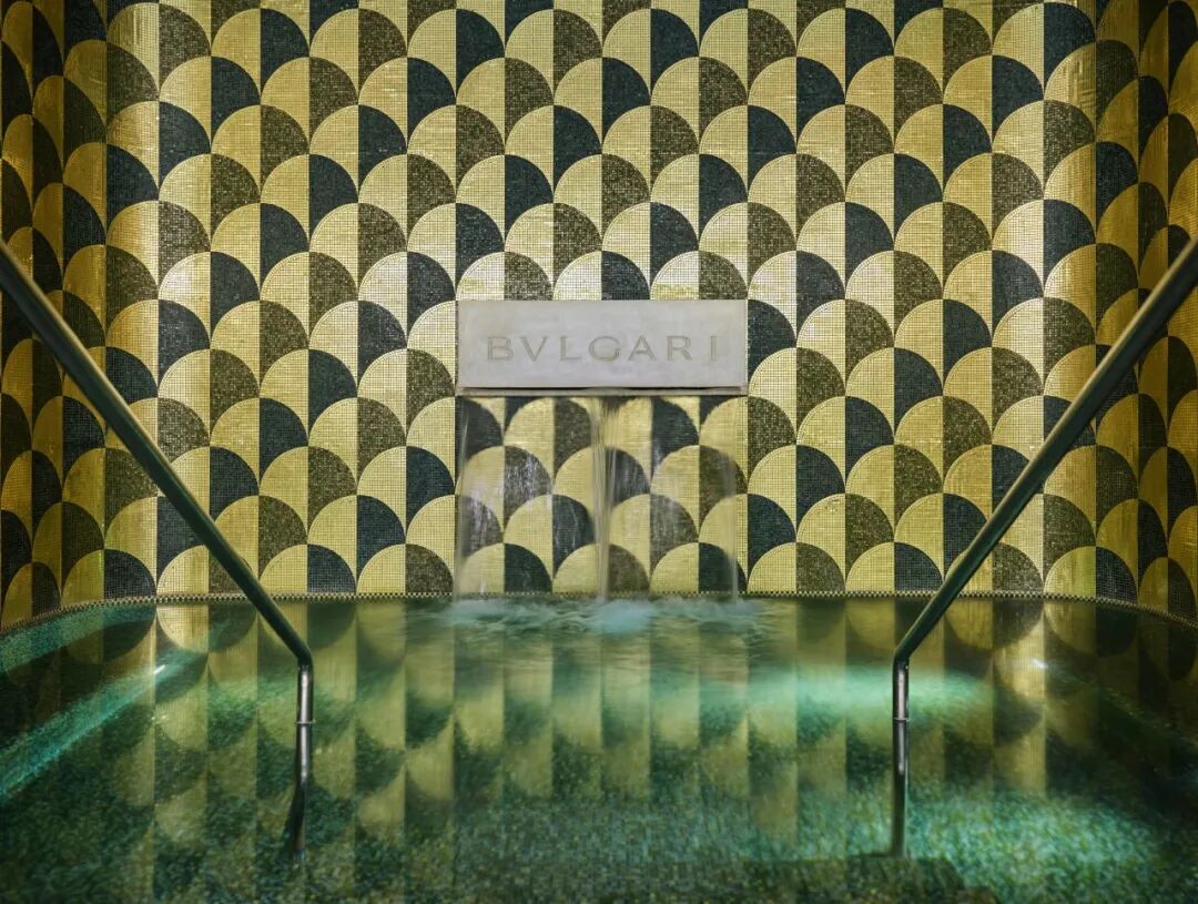 Antonio Citterio作为宝格丽酒店及度假村的御用设计师,其设计的泳池不仅是设施,更是酒店的核心精神与美学殿堂。使用顶级意大利维琴察石与黄金玻璃马赛克,透过空间中节制的光影与流动的水波,打造出宁静且充满光影魅力的水下圣殿,一个让人感受意大利奢华与诗意流动的空间。