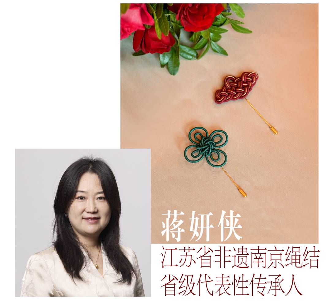 中国结以线成结,以结成意,在交叠与回环之间,把《安邸AD》的新年心意,收束为一种更恒久的记忆形式。两款中国结胸针一为吉祥福运,一为如意生花,皆由江苏省非遗南京绳结省级代表性传承人蒋妍侠老师亲手编结。它们将今夜的相遇收束成可携带的形,也将祝愿转译为可见的结构与纹理。祥云取势,愿行止皆安。花结成韵,愿心意渐开。