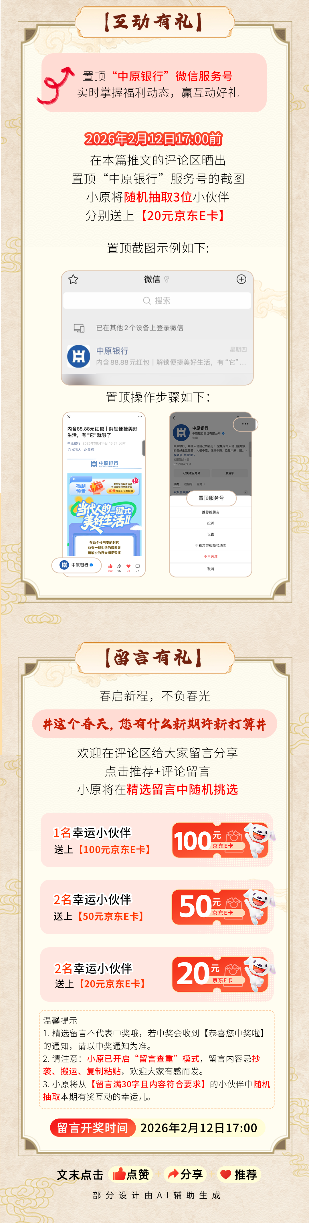 文章内容来源于公众号:中原银行,点此可查看原文,内容版权归相关企业所有,本网站仅供交流学习。若涉及版权问题或存在侵权情况,请及时与我们联系,我们将第一时间进行删除处理。