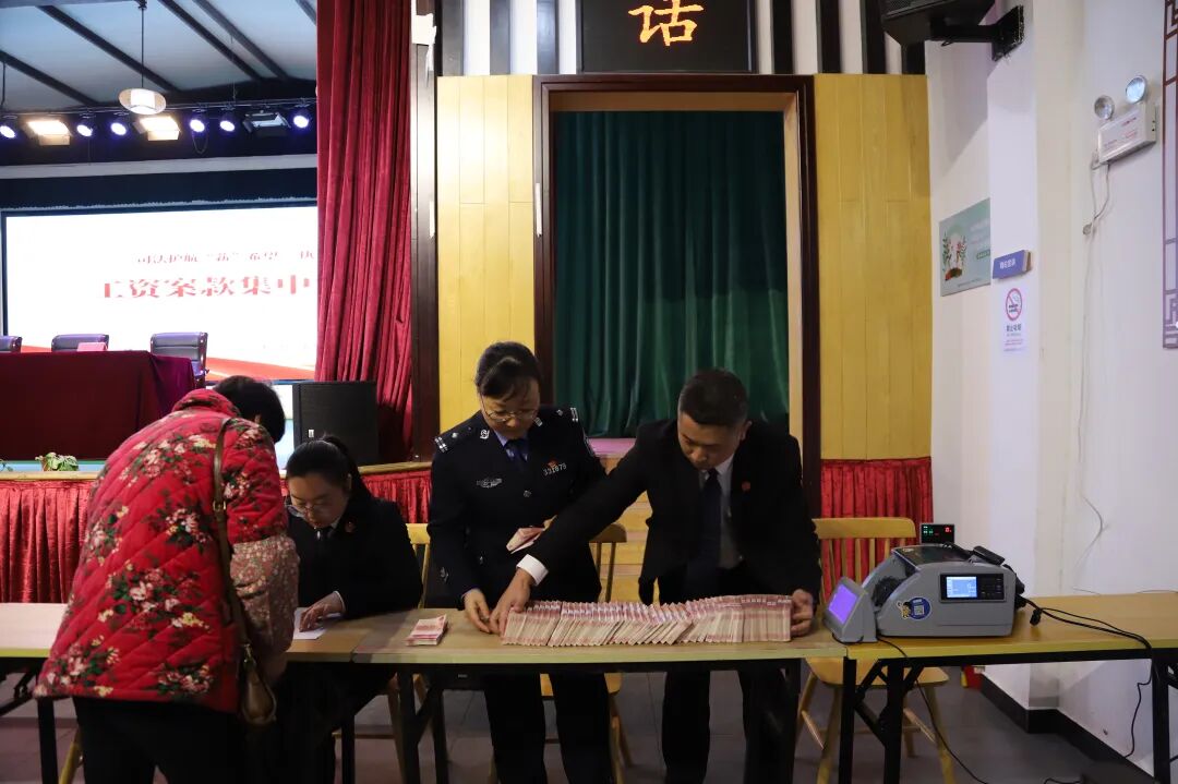 1月29日,在乡村文化礼堂内,工资案款集中发放仪式举行,所有职工的劳动报酬52.46万元当场发放完毕。