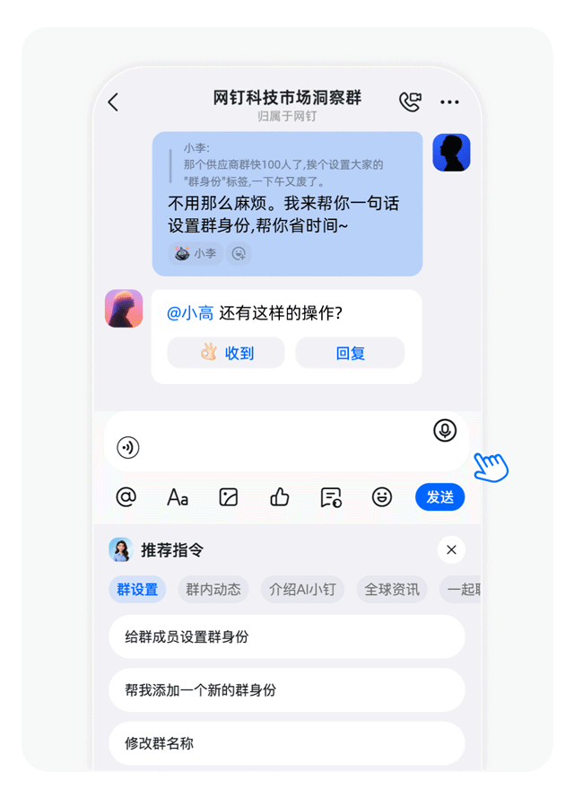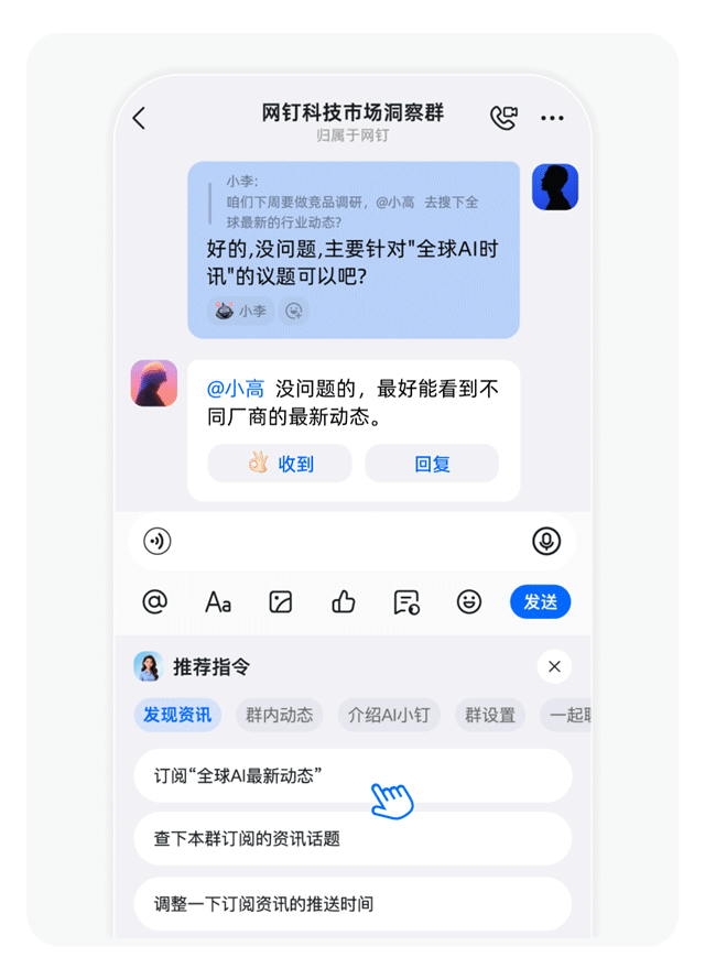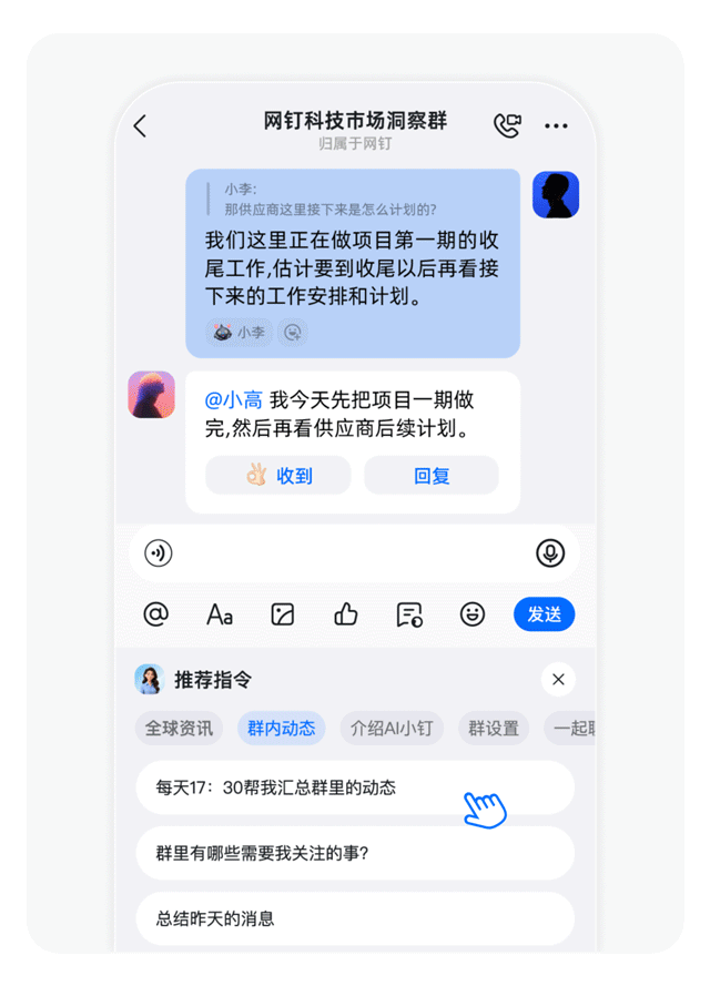 摘要:上钉钉群聊@AI小钉,出来干活