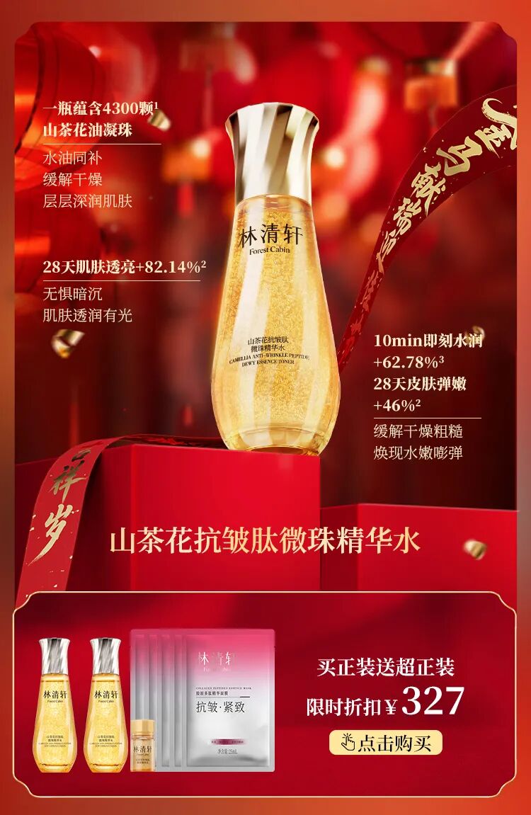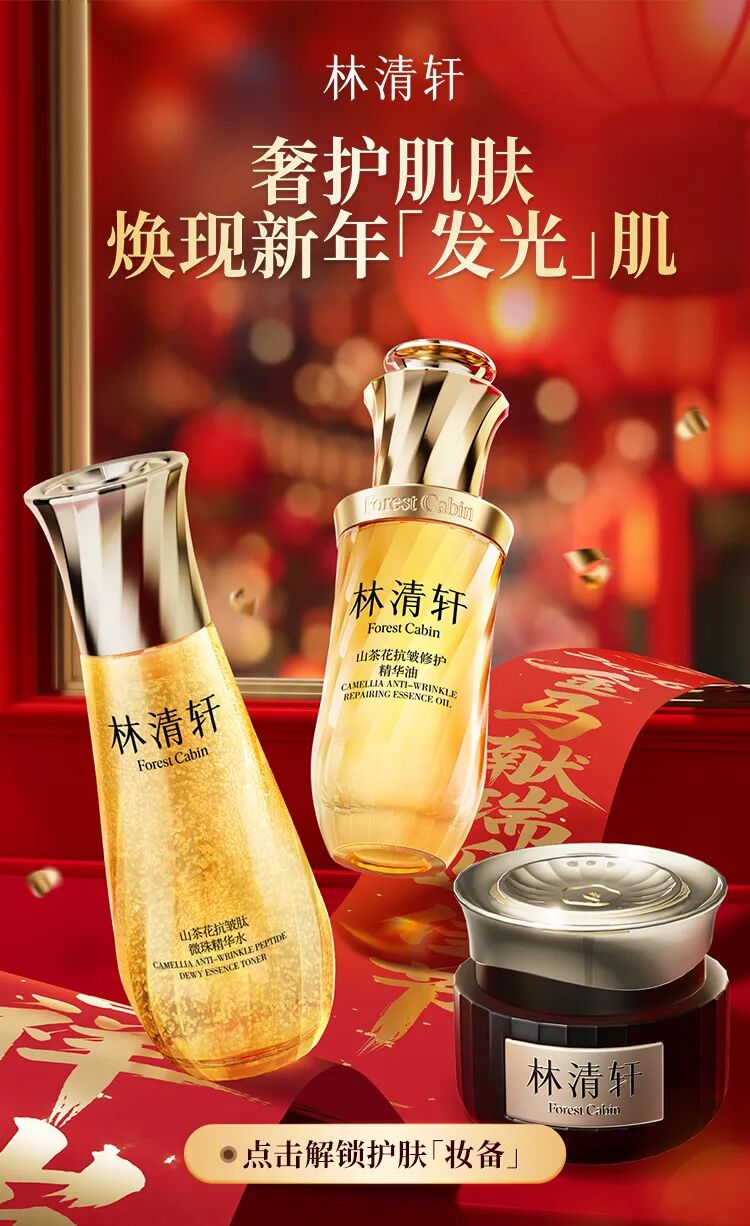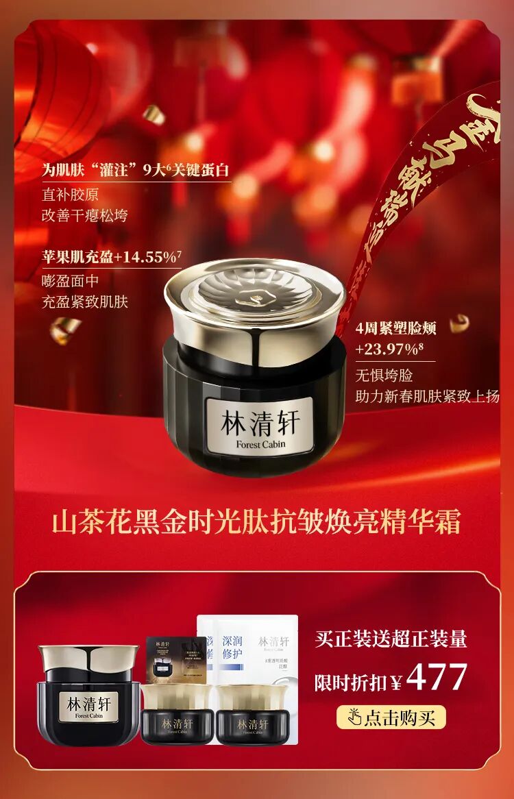 7.数据来源于第三方测试机构,基于30位41-59岁中国敏感皮肤受试者使用林清轩山茶花黑金时光肽抗皱焕亮精华霜28天后苹果肌体积的仪器测试结果、实际使用效果因人而异。