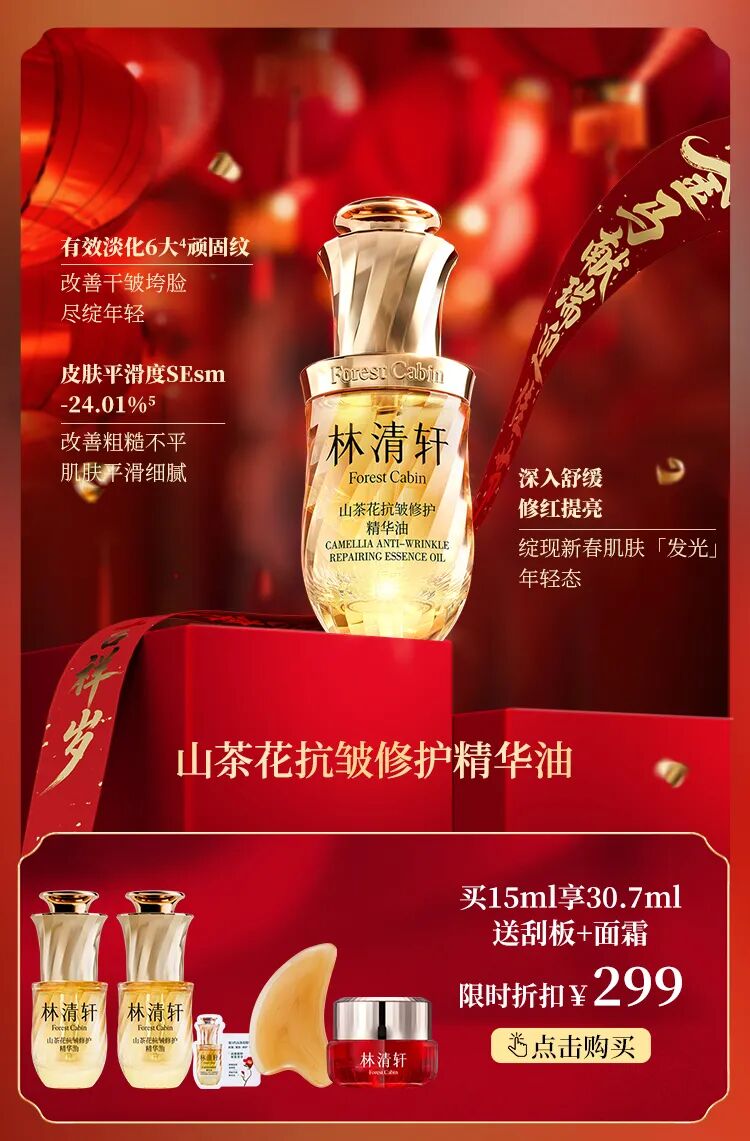 5.数据来源于第三方检测机构,基于32名35-60岁受试者使用林清轩山茶花抗皱修护精华油28天后的仪器测试结果,实际使用效果因人而异。