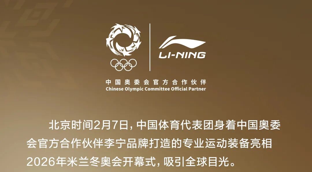 摘要:中国体育代表团身着李宁品牌亮相2026年米兰冬奥会开幕式