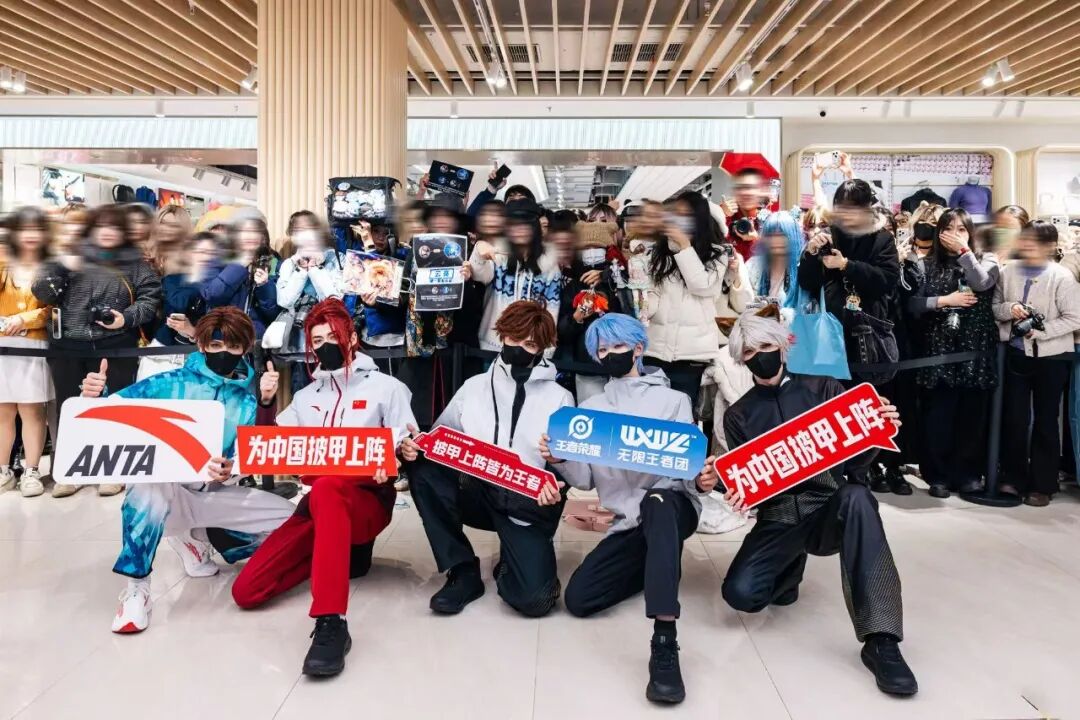 作为「安踏冰雪助力官」,“无限王者团”全员身披中国队同款“战袍”亮相安踏豫园门店——“守约”身着平行大回转队同款比赛服,“亮”身穿冰壶队同款,“白”穿着单板滑雪队同款,“信”搭配短道速滑队同款、“云”则身披自由式滑雪队同款比赛服。峡谷赛场的热血锋芒,就此与冰雪赛场的荣耀光芒同频共振,交相辉映。
