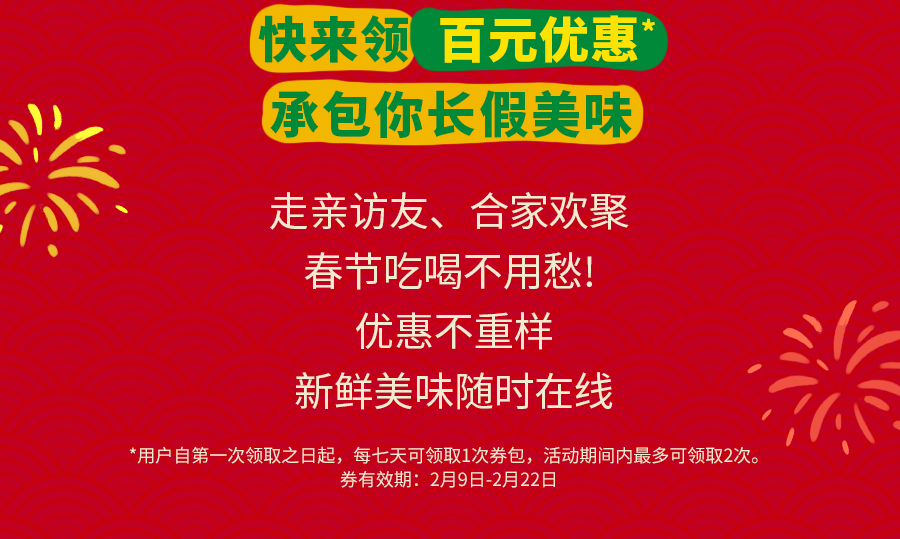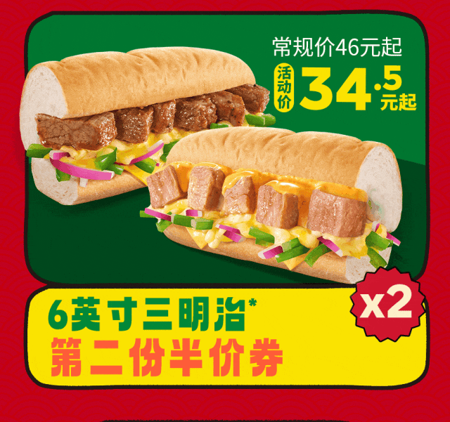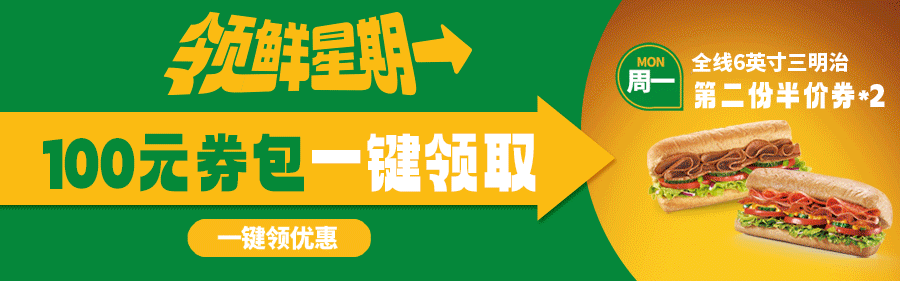 摘要:一键领100元券包,享赛百味春节超loooong优惠,长假美味更划算!