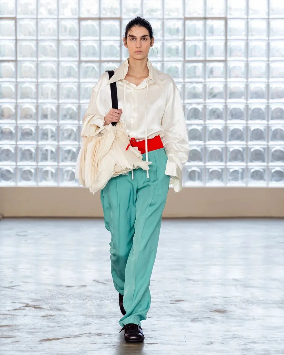 两人各自在洛杉矶和新加坡工作一段时间后,选择回到意大利开始筹备做品牌的相关事宜——周俊曾在米兰生活、求学,对当地时尚生态熟稔于心。但一次偶然的上海之旅,让他们看到了本土设计的蓬勃潜力:“当时国内刚好处于本土设计觉醒的初期,有很多机遇,我们很快决定把工作室选在上海。” 李雨山补充,上海的街区文化与弄堂生活,甚至老人们夏天戴的遮阳帽,都成了灵感来源,“这座城市既有国际视野,又保留着浓厚的本土气息,很适合我们这种拥有 ‘跨文化背景’ 的设计师。”