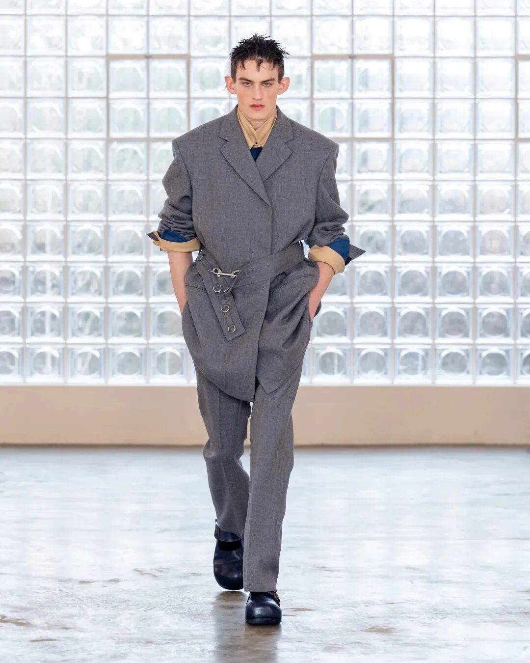 “我们的灵感不是凭空来的,是从每一段旅程中获得的。” 周俊举例,品牌早期推出的当代中山装,其灵感与工艺就源自两人在意大利和英国学西式剪裁的经历,以及回到上海后跟随洪帮裁缝学习中山装制作的过程。而此次米兰秀场的十周年系列 “木塔”,灵感则完全来自山西应县木塔 —— 这座未用一根钉子、全靠榫卯结构支撑的千年建筑,让他们看到了东方工匠精神的力量。