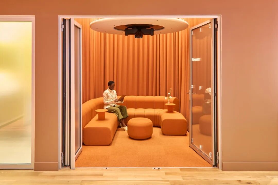 设计以营造亲密体验为核心,打造出一系列边界柔和的区域 —— 弧形隔断与色彩分区的设计,构建出符合人体尺度的交流场景。© Hanna Grankvist