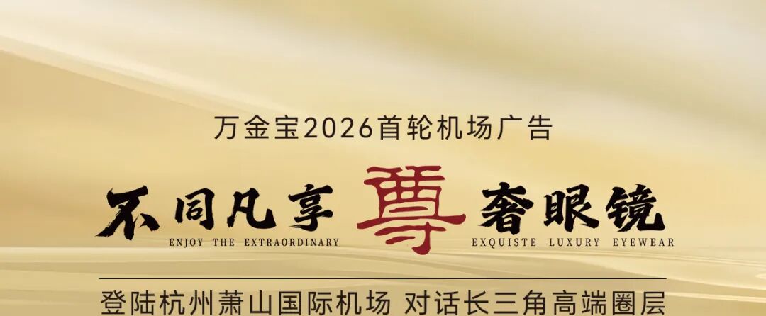 2026年2月4日,万金宝轻奢眼镜年度品牌战略首轮机场广告携“不同凡享 尊奢眼镜”正式登陆杭州萧山国际机场,向全球旅客输出尊文化的当代魅力。