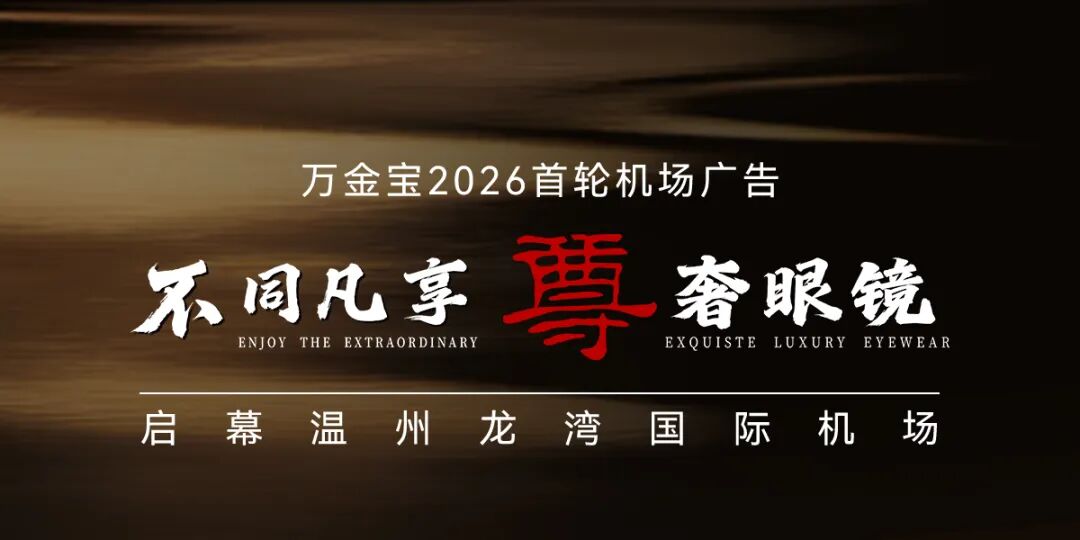 万金宝轻奢眼镜2026年度品牌战略首轮机场广告重磅登陆温州龙湾国际机场,以“不同凡享 尊奢眼镜”为核心理念,于2月4日正式亮相,立足浙南航空枢纽,链接温州及浙闽高端圈层,以文化为媒传递东方尊奢魅力,推动品牌全球化布局再进一步。