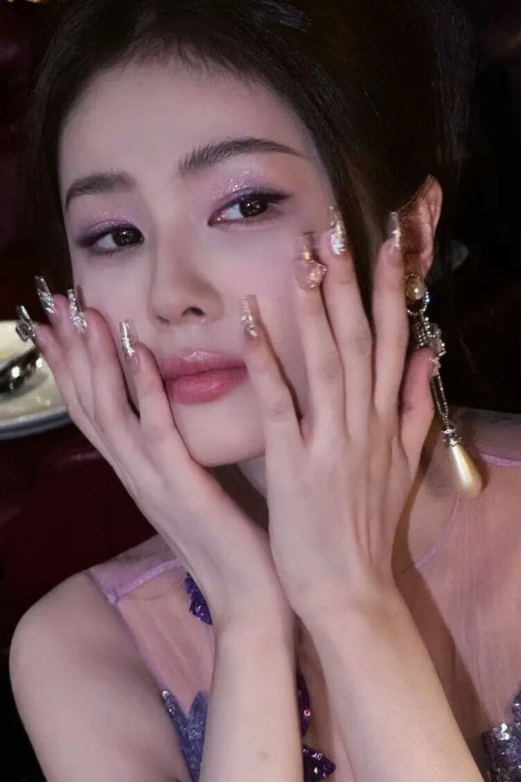小颗粒的金色闪片甲油胶最适合勾勒细致的线条,韩国idol们私下最爱的美甲沙龙kirameki nail就做过很多类似的款。美甲师给Gawon画了一个象征名字开头的“G”,在金沙与钻光的交相辉映下,让她连举手投足间都是浓浓的星味。