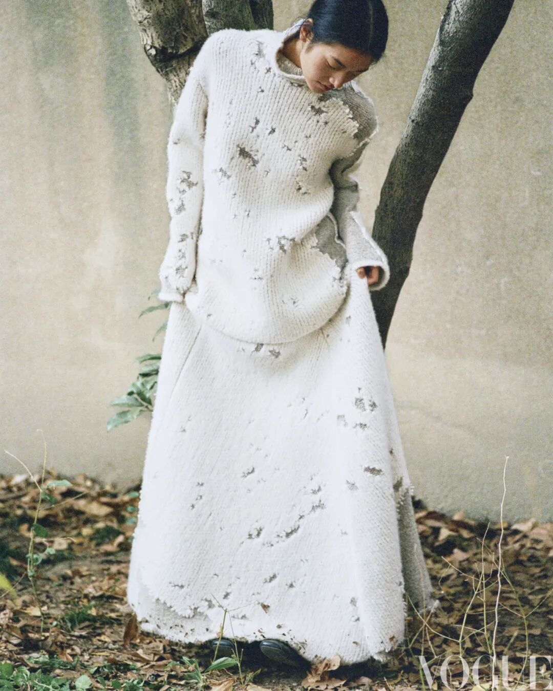 她需要将这些认知落到实处。在The Row面料部门的实习,成了一次系统性的语言学习:她整日与数百种面料样本相处,辨认克重带来的垂坠差异,理解纱线成分如何决定触感。后来在一家小型买手店,她几乎包揽了从产品开发、拍摄到客户沟通的所有事务。毕业前夕,一位老师建议不善公开表达的她,不妨将一次设计比赛当作练习场。她去了,又意外获得了奖项。